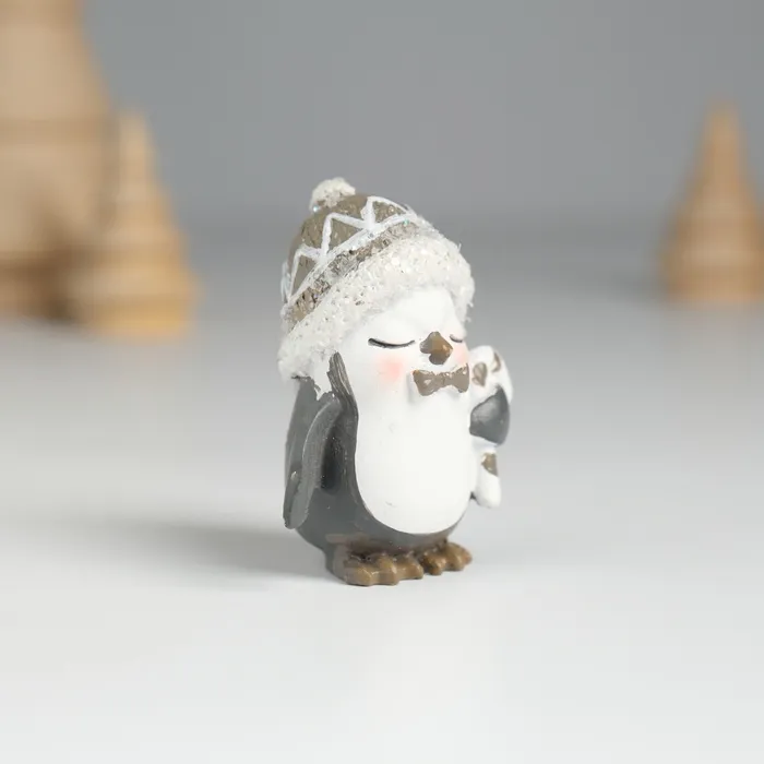 Фигурка полистоун «Пингвин в шапке, с леденцом», 3.5×2.5×4.6 см