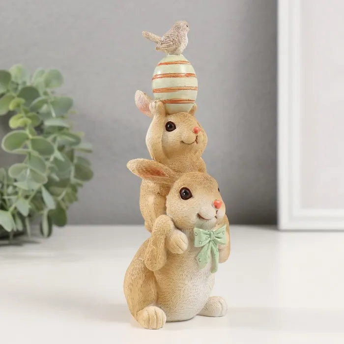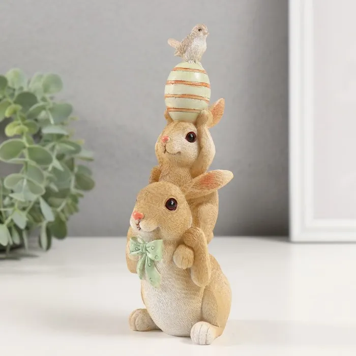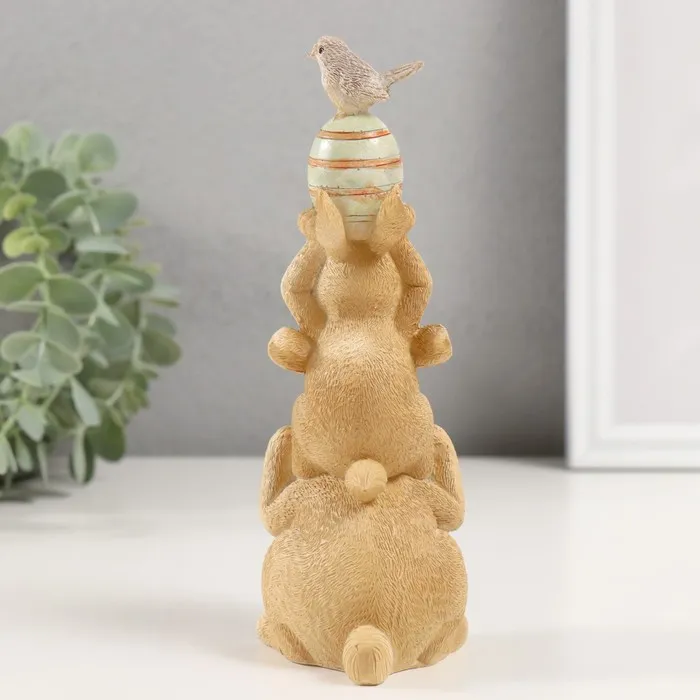 Фигурка полистоун «Пирамидка: Зайчики с пасхальным яичком и птичкой», 8.5×6×17.5 см — Характеристики