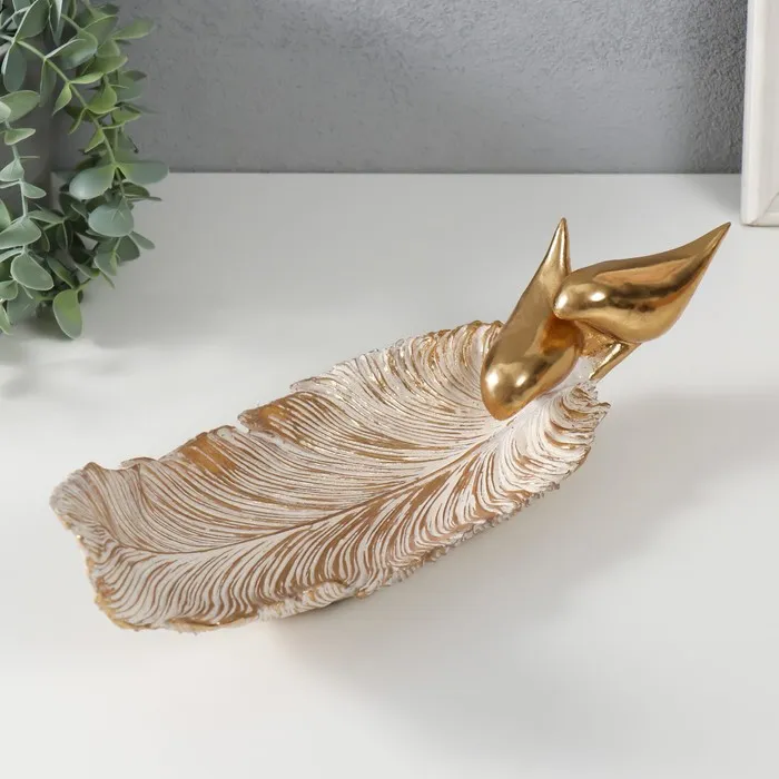 Фигурка полистоун подставка «Две птицы на листе», золото, 36×11.3×11.7 см — Характеристики