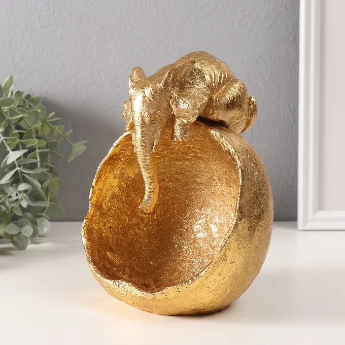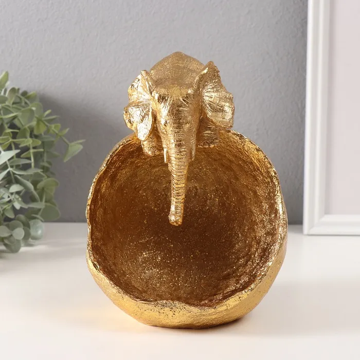 Фигурка полистоун подставка «Слон с большой каменной чашей», золото, 13×15×18 см — Характеристики