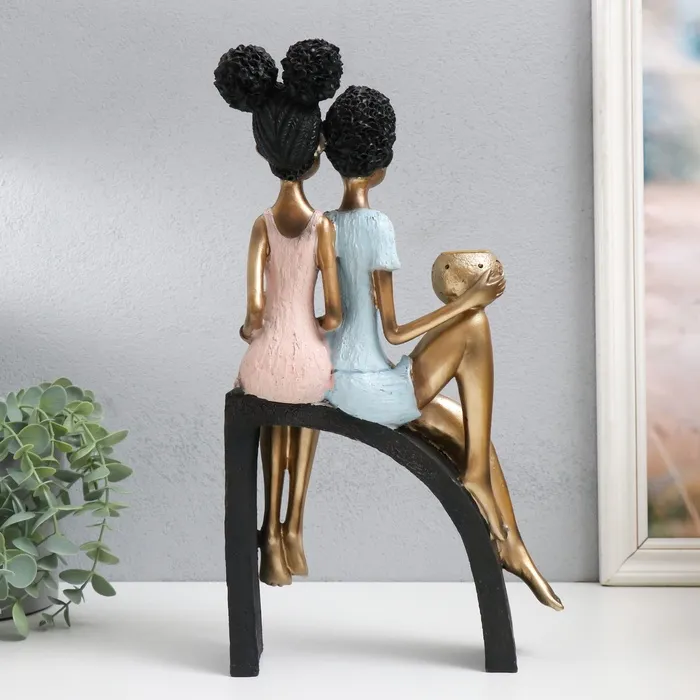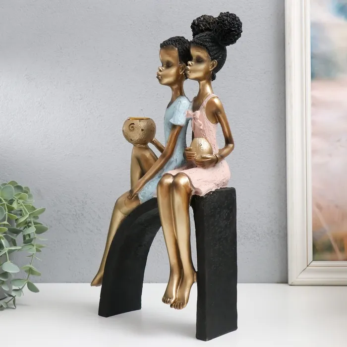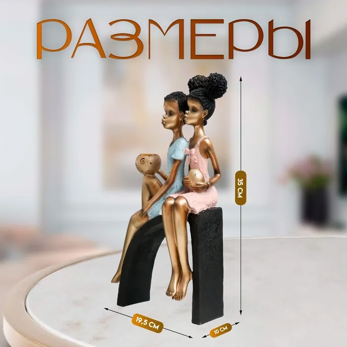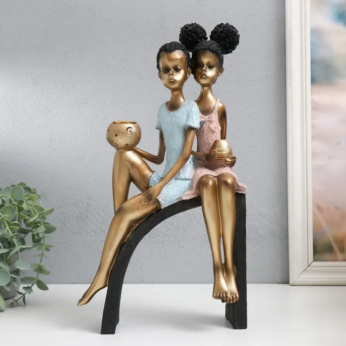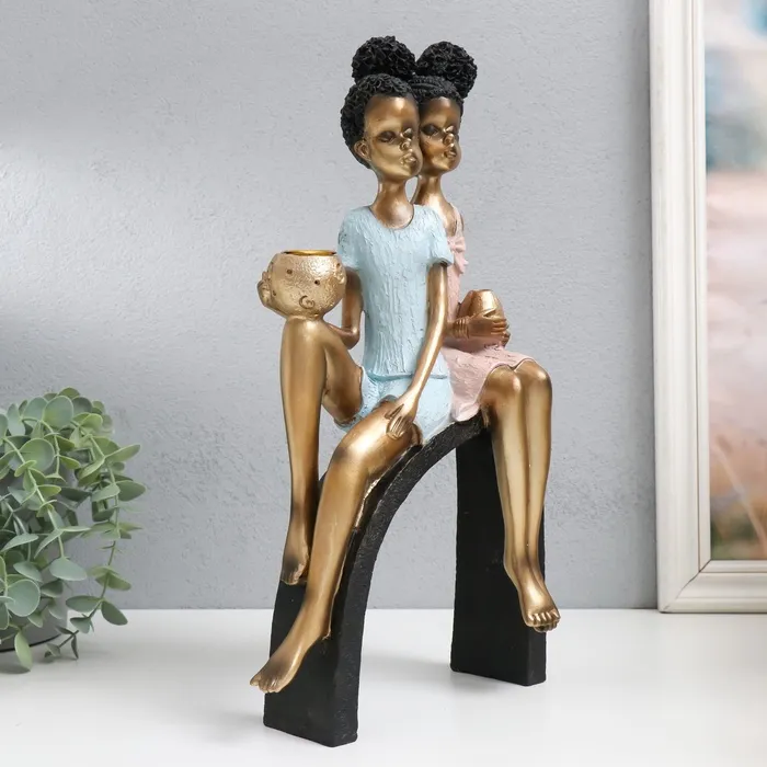 Фигурка полистоун подсвечник «Дети на горке, с кувшинами», бело-золотой, 19.5×10×35 см — Характеристики