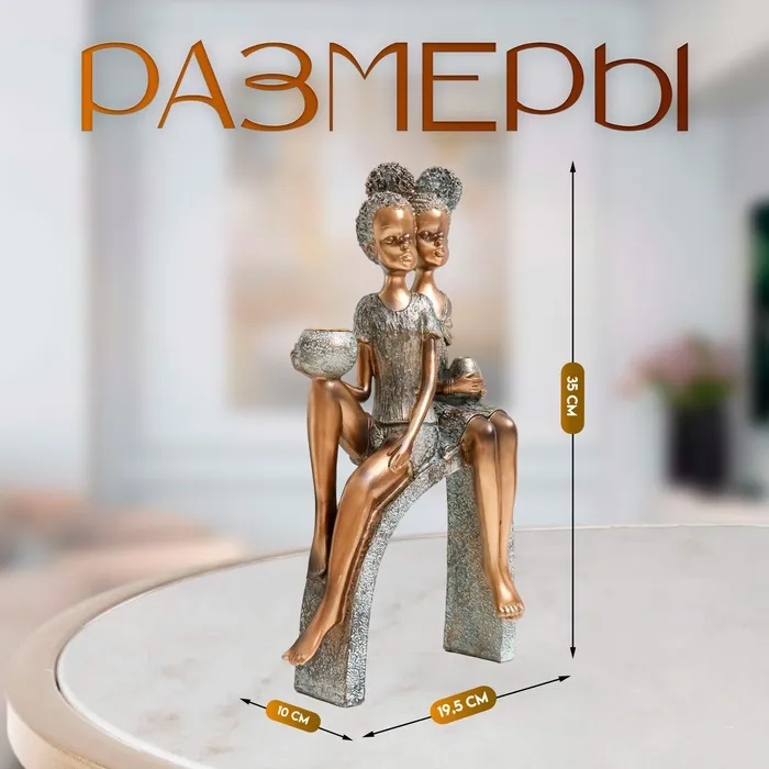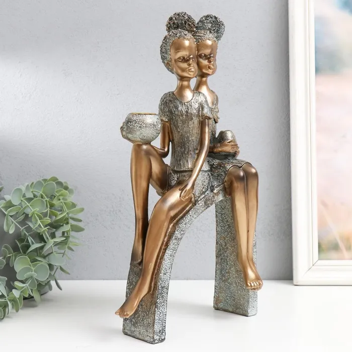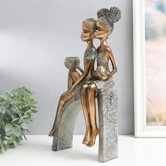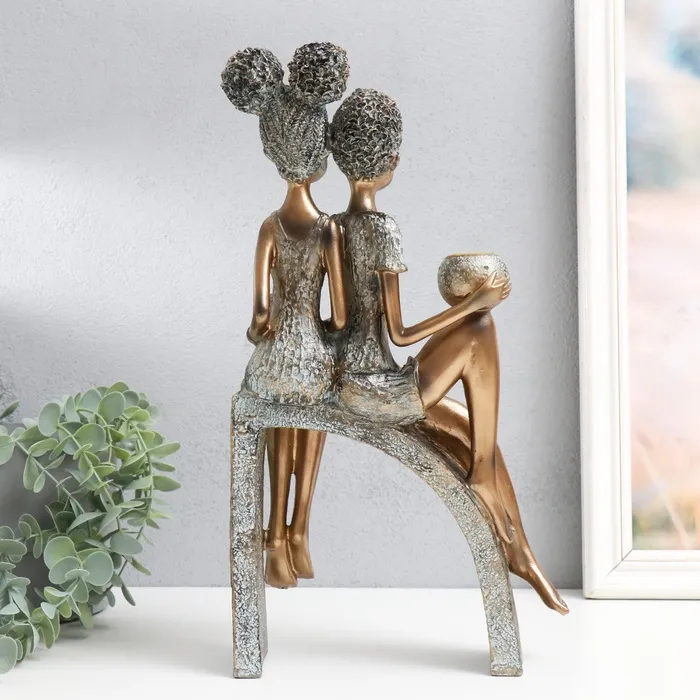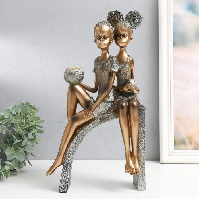 Фигурка полистоун подсвечник на 1 свечу «Дети на горке, с кувшинами», под бронзу, 19.5×10×35 см — Характеристики