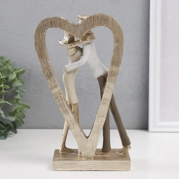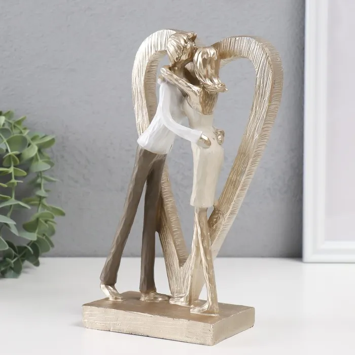 Фигурка полистоун «Поцелуй влюблённых у большого золотого сердца», 13.5×7×22 см — Характеристики