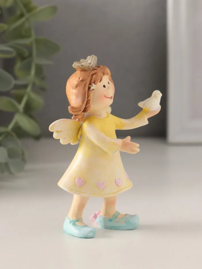 Фигурка полистоун «Принцесса-ангел в жёлтом платье с голубкой в руке», 7×4×10 см — Характеристики