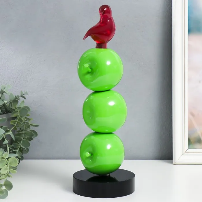 Фигурка полистоун «Птичка на трёх яблочках», зелёный, 11.5×11.5×34 см — Характеристики