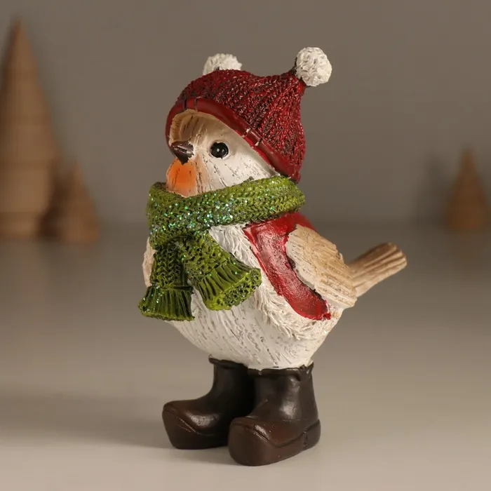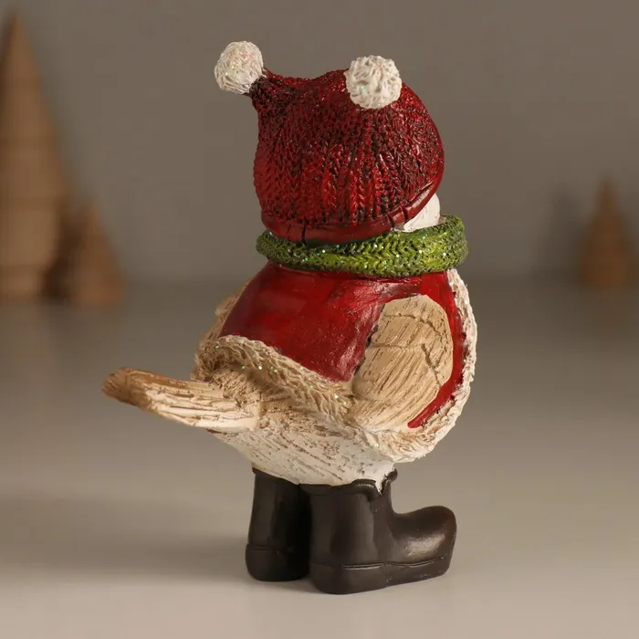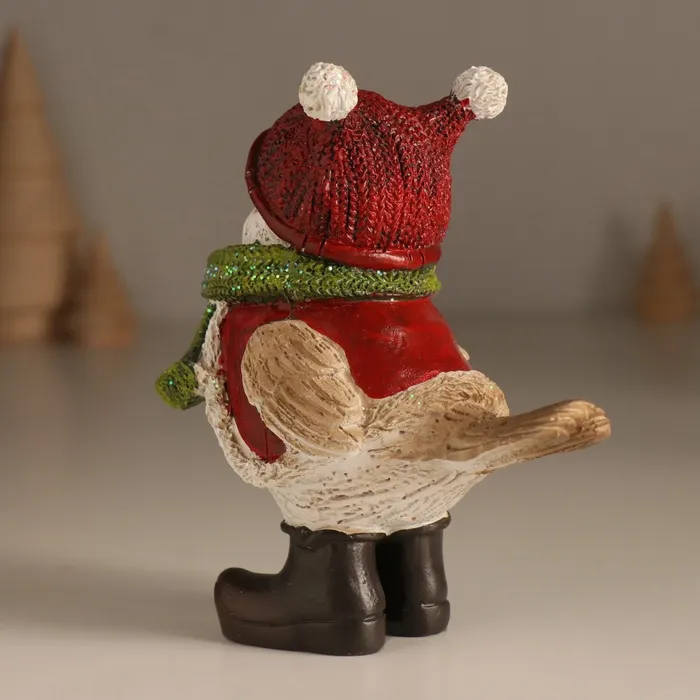 Фигурка полистоун «Птичка в жилетке, вязаной шапке с помпонами», 6×10.5×12 см — Характеристики