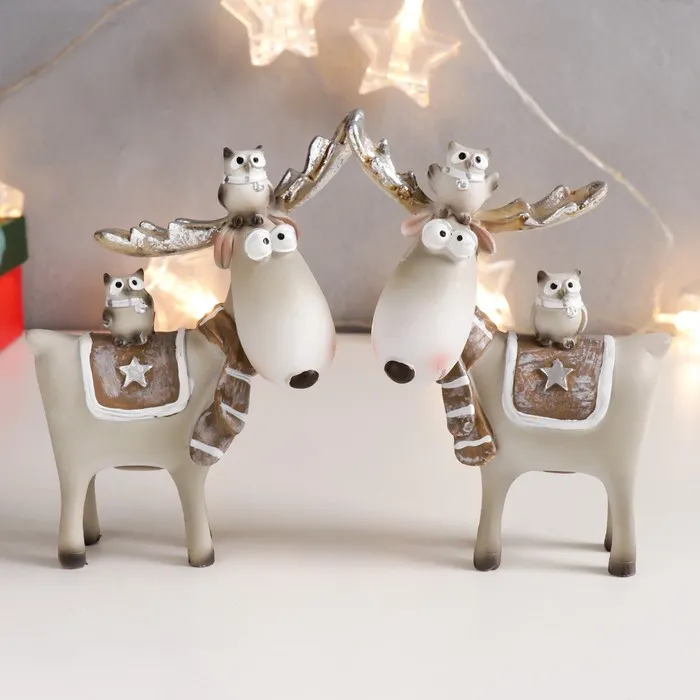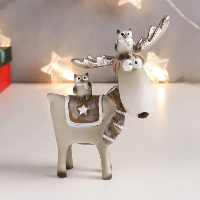 Фигурка полистоун «Пучеглазый лосик с филинами», 14×10.5×4 см, МИКС — Характеристики