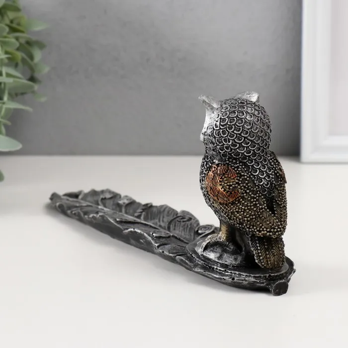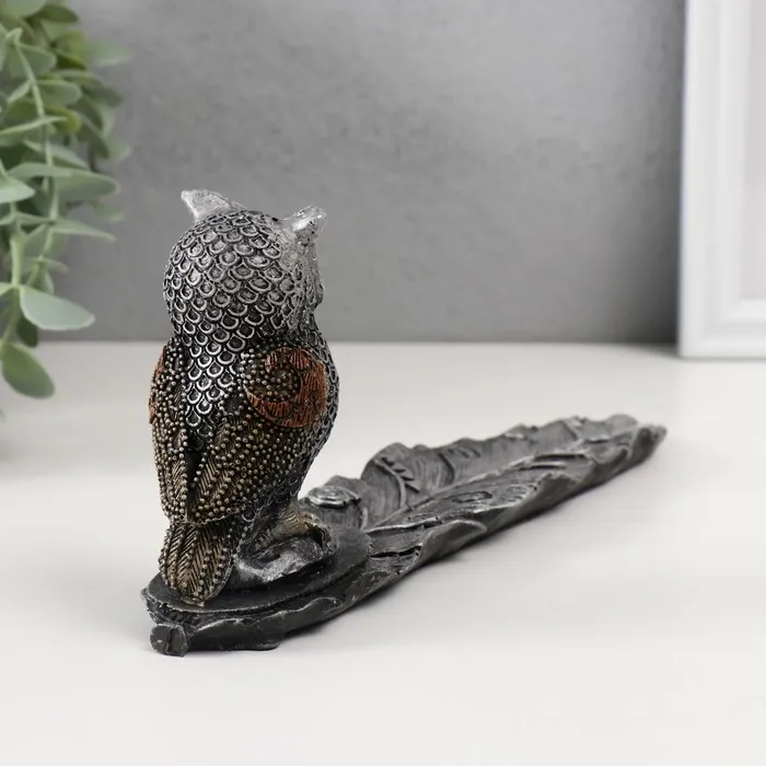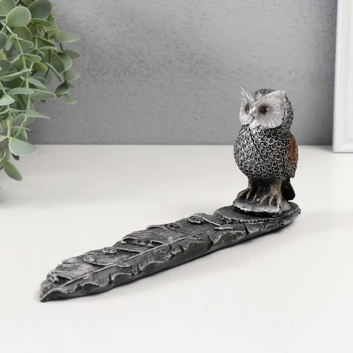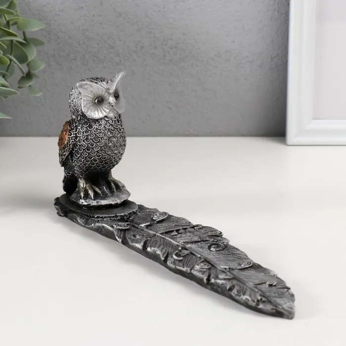 Фигурка полистоун с подставкой под благовония «Филин на пёрышке», 5×24×10 см