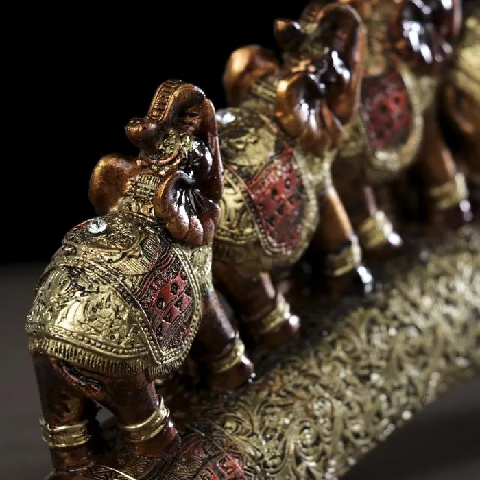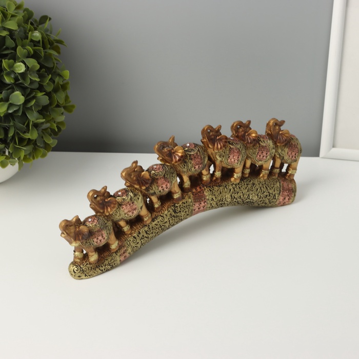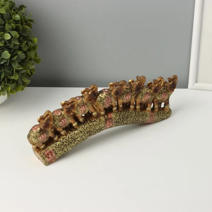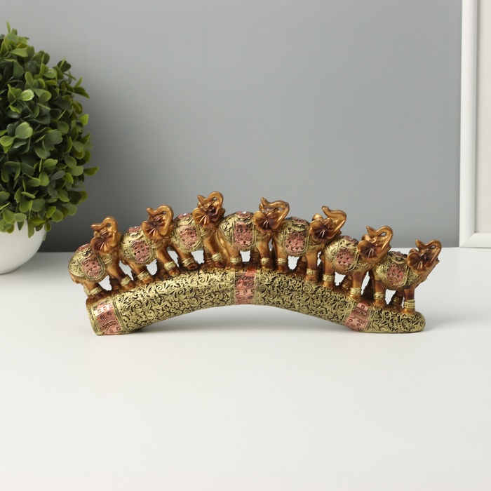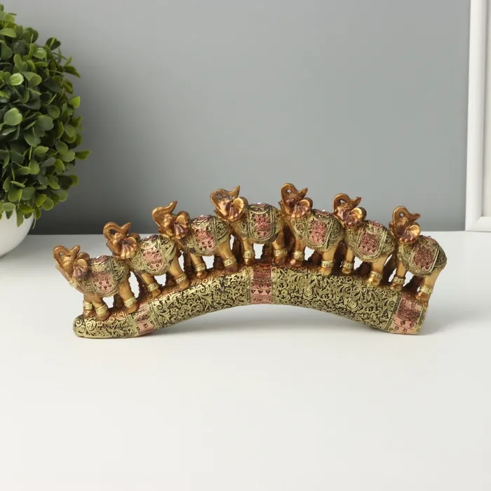 Фигурка полистоун «Семь африканских слонов в золотой, ажурной попоне», 10.7×29×4 см — Характеристики