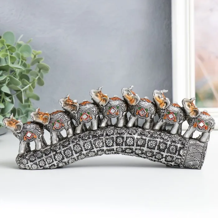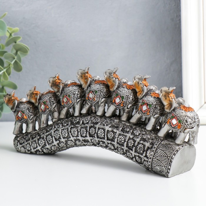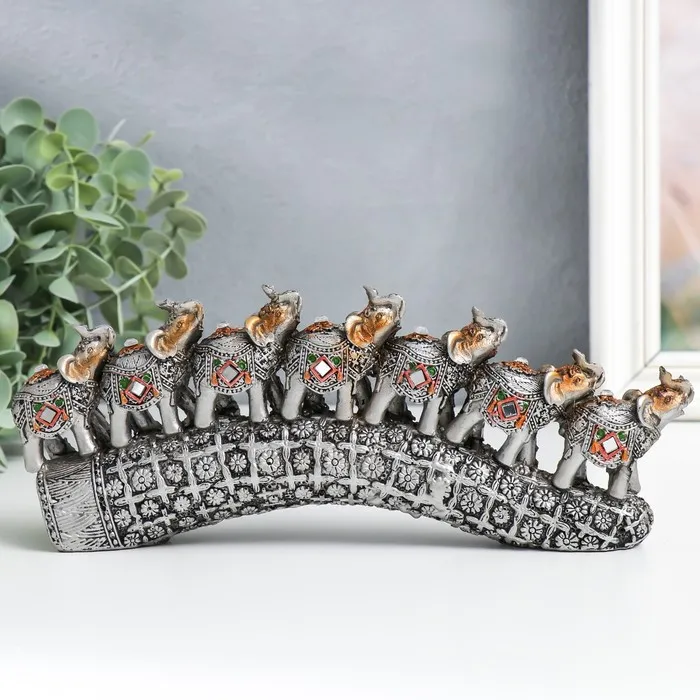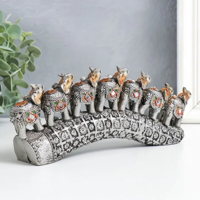 Фигурка полистоун «Семь слонов на бивне с цветами», серебро, 21×4×9.8 см — Характеристики