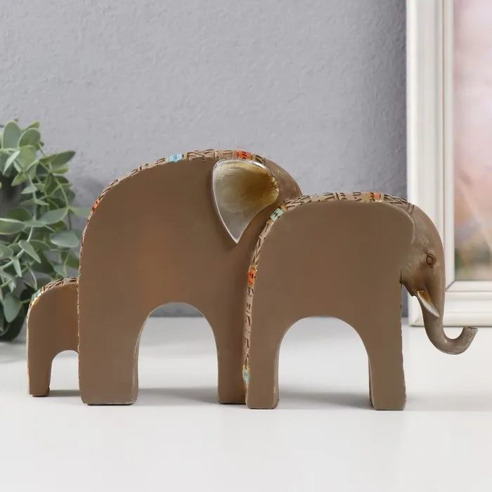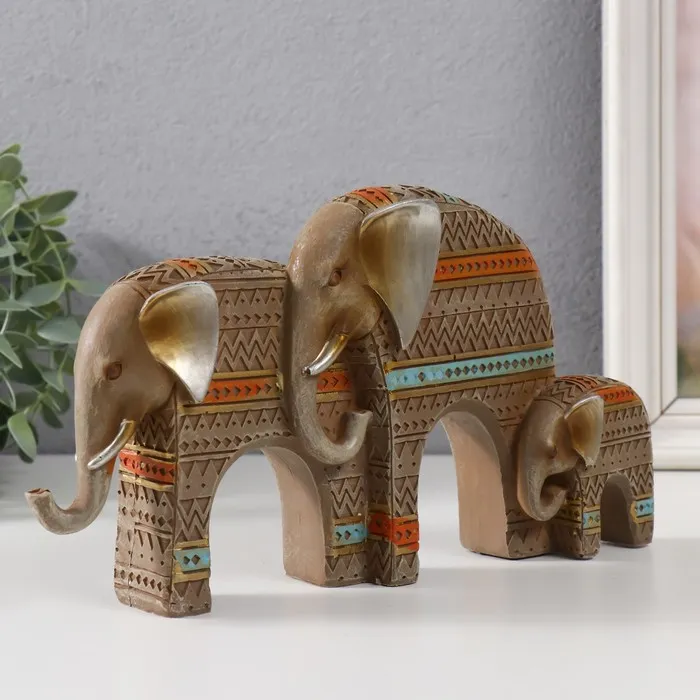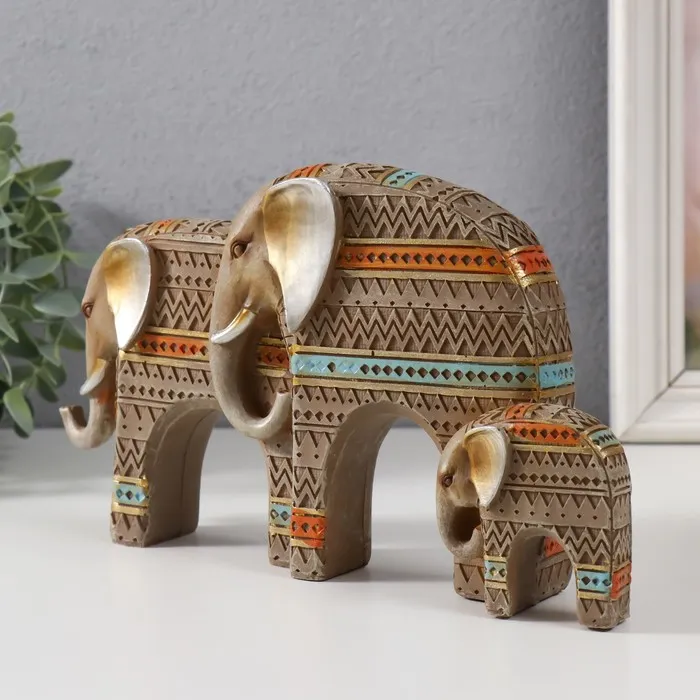 Фигурка полистоун «Семейство слонов. Африканские узоры», мокко, 7×5×15 см — Характеристики