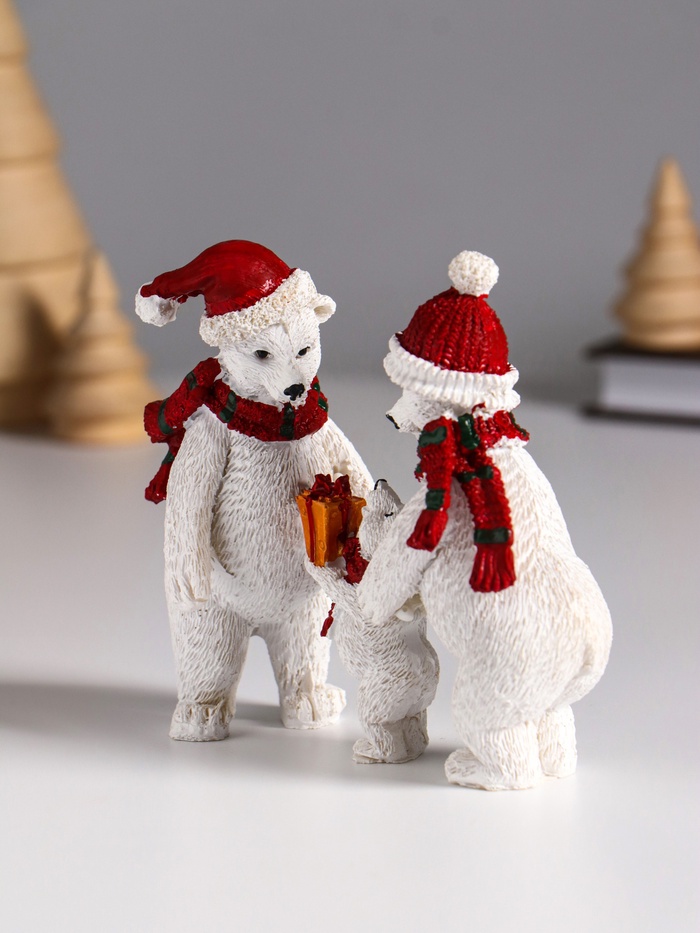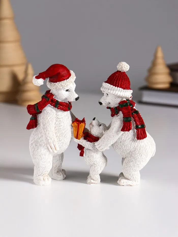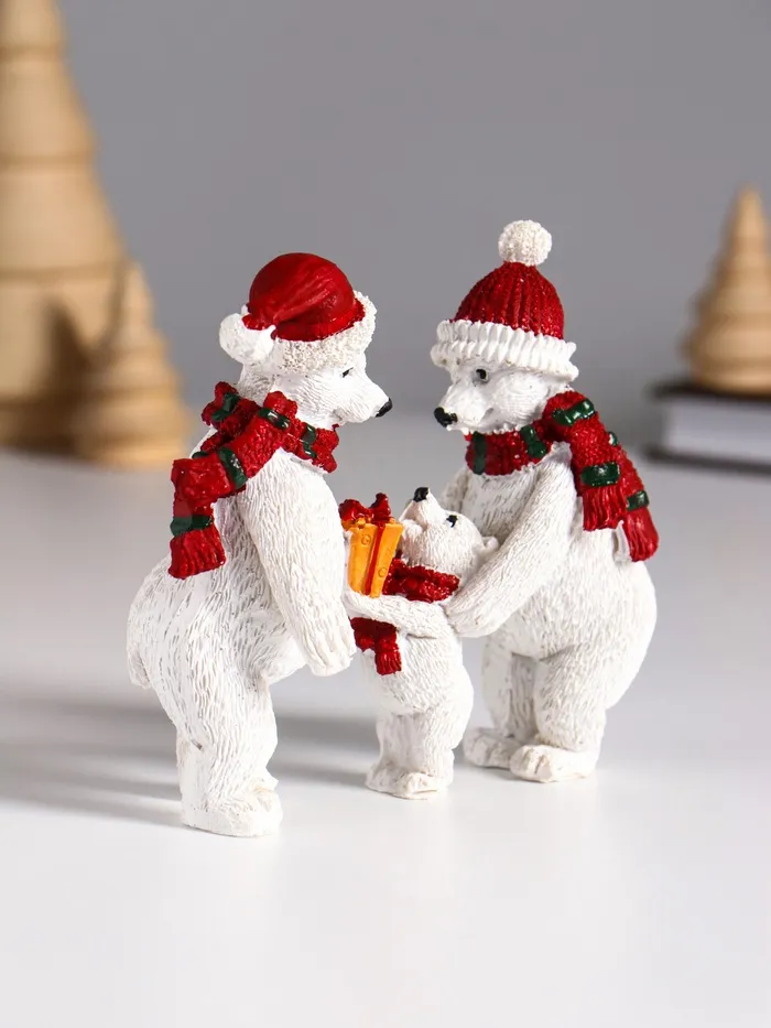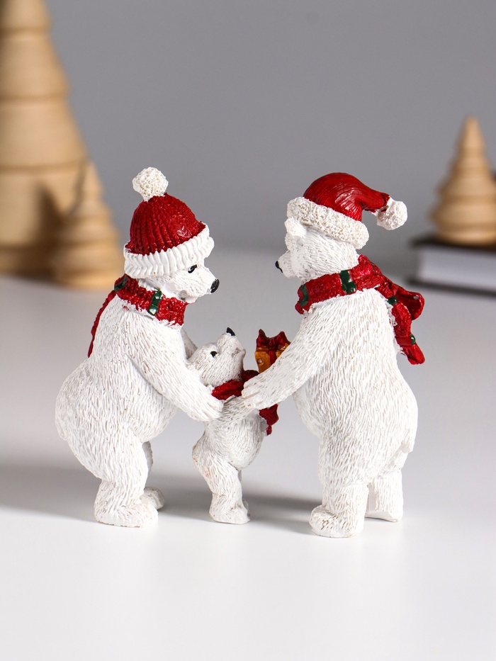 Фигурка полистоун «Семья белых медведей в вязаных шарфах и шапках», 10.5×4.3×10 см — Характеристики