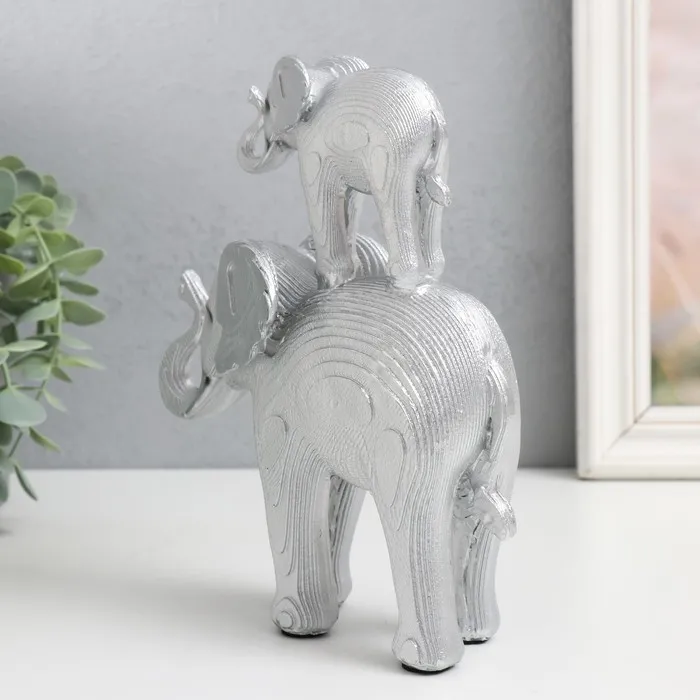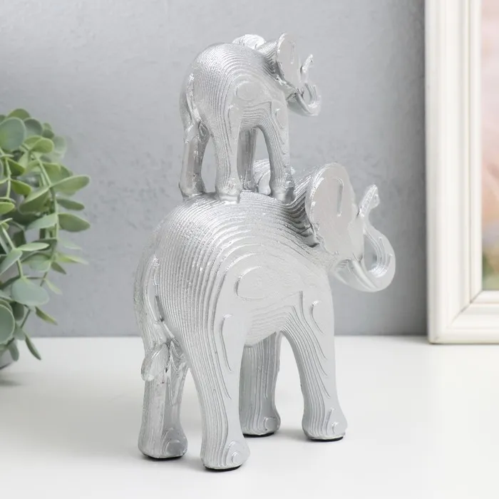 Фигурка полистоун «Серебристый слон со слонёнком на спине: узор листья», 16×7×19.5 см — Характеристики