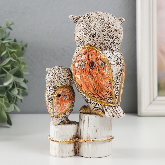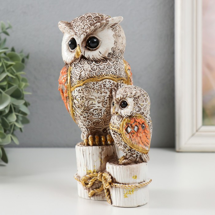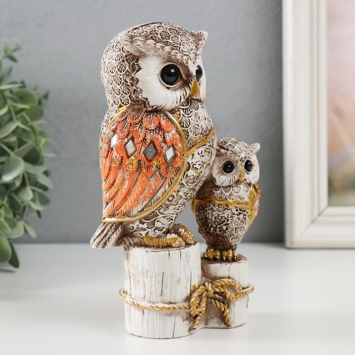 Фигурка полистоун «Серый филин с коричневыми крыльями, с совёнком на пеньках»,16.8×9.5×5 см — Характеристики