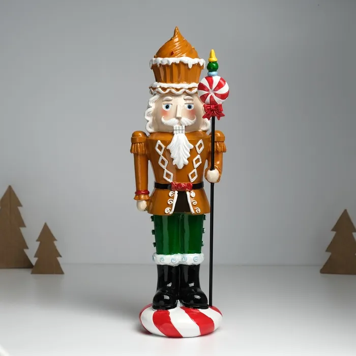 Фигурка полистоун «Щелкунчик в имбирном мундире, с кексом и пикой с леденцом», 13×10×35.5 см — Характеристики