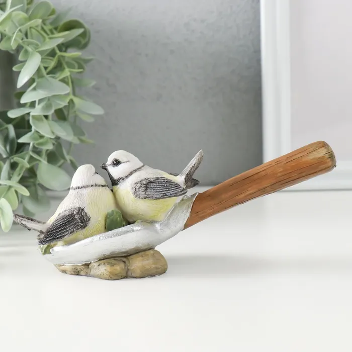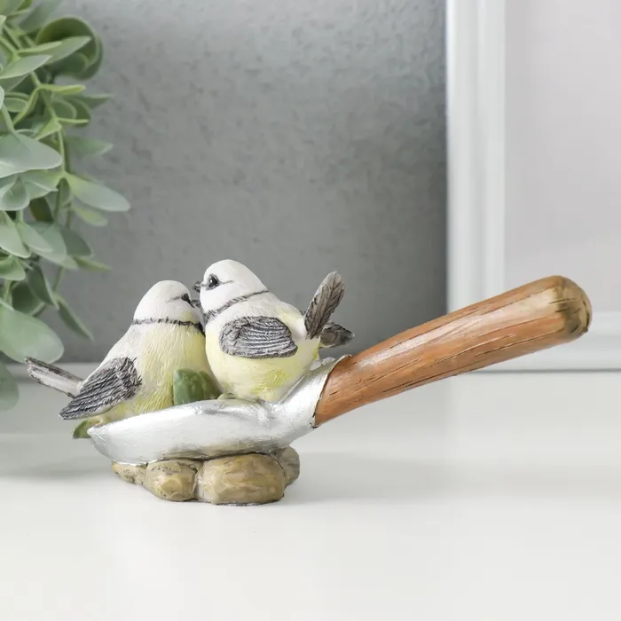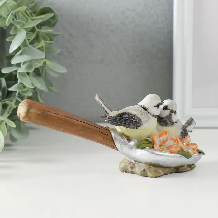 Фигурка полистоун «Синички на лопате, с цветами», 17×5.5×7 см — Характеристики