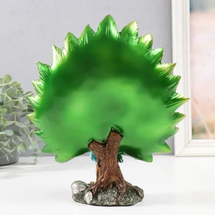 Фигурка полистоун «Синий павлин с зелёным распустившимся хвостом на полянке», 10.5×22×26 см — Характеристики