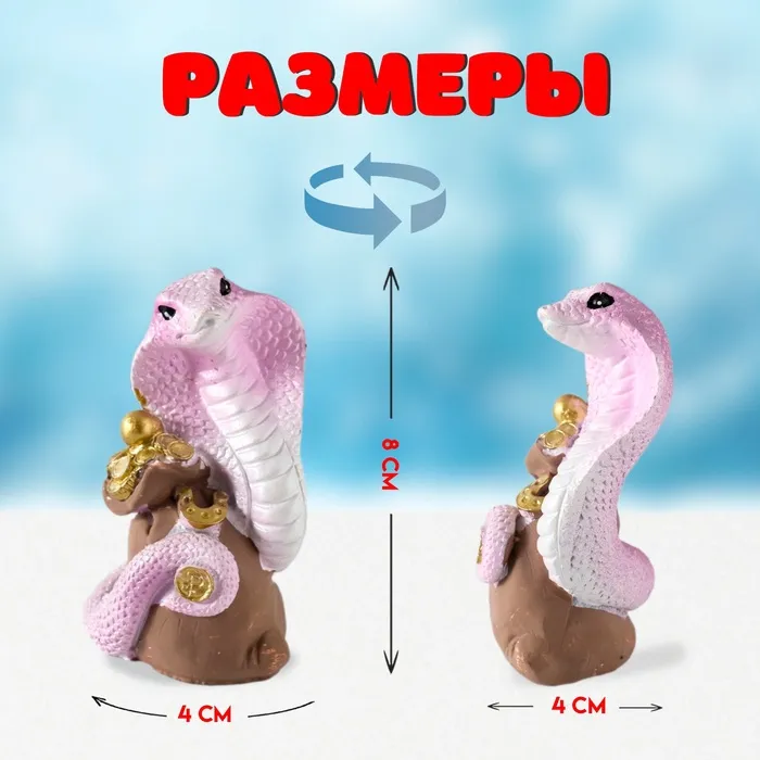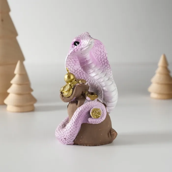 Фигурка полистоун «Сиреневая кобра с мешком монет», 4×4×8 см — Характеристики