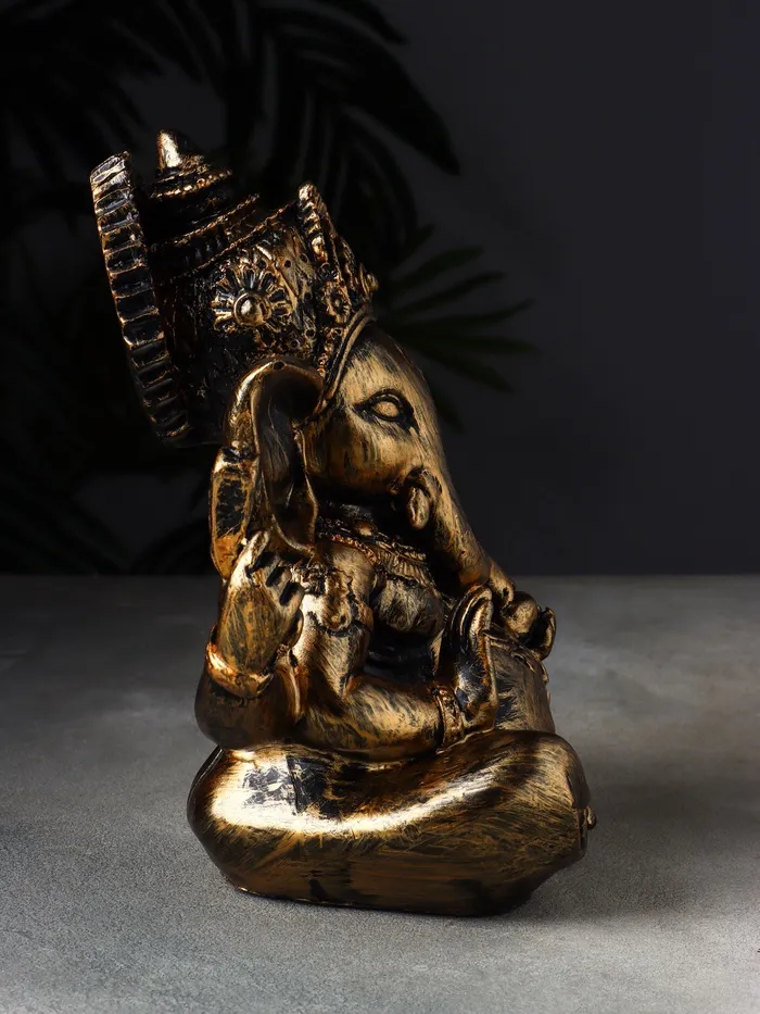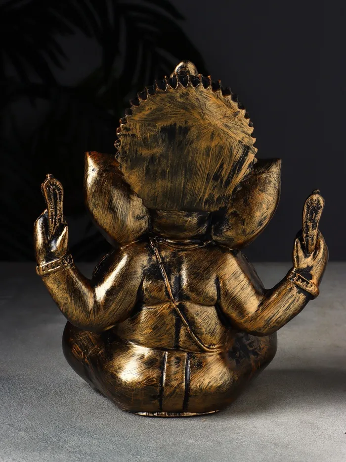 Тщательно проработанные элементы фигуры - от изящного хобота до традиционных атрибутов - демонстрируют мастерство исполнения. Компактные размеры (22×20×12 см) позволяют разместить этот шедевр как на рабочем столе, так и в специальной нише для духовных практик.