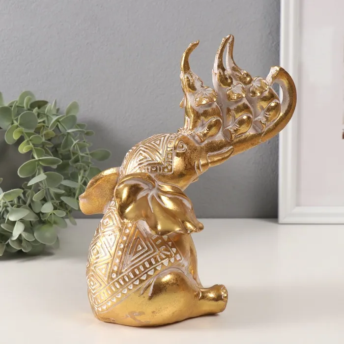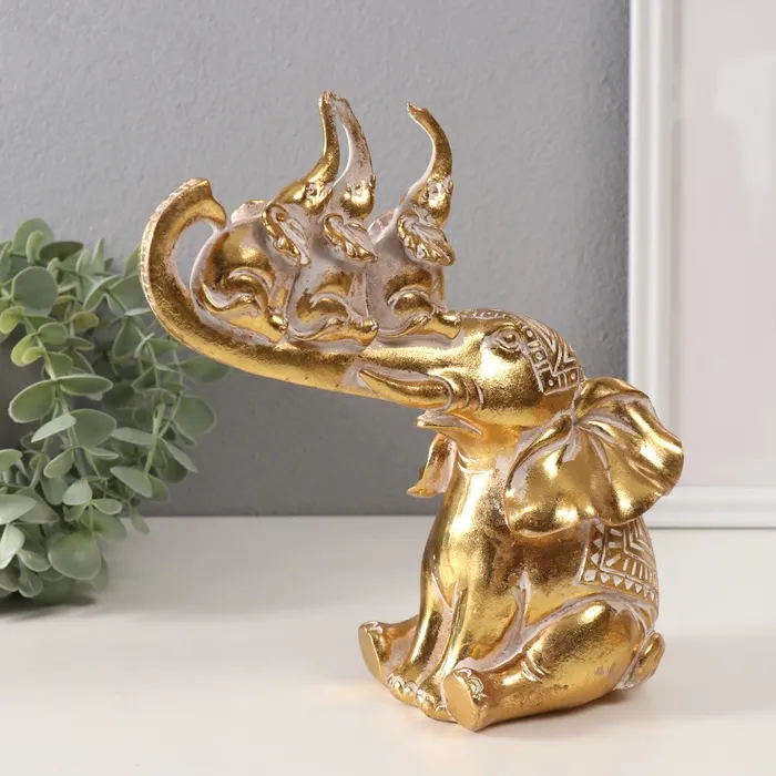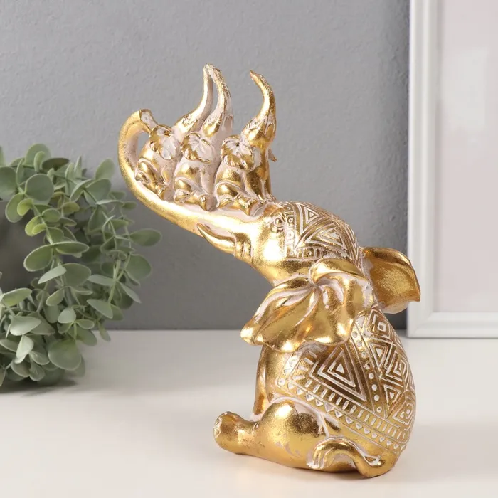 Фигурка полистоун «Слон и 3 слонёнка на хоботе. Индейские узоры», золото, 19.8×10.3×21.5 см — Характеристики