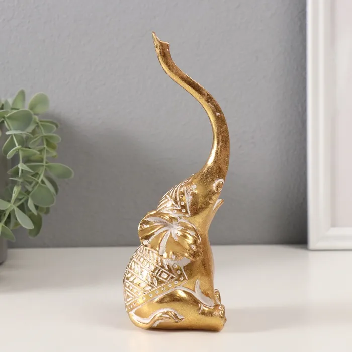 Фигурка полистоун «Слон. Индейские узоры», золото, 7×6.5×19 см — Характеристики