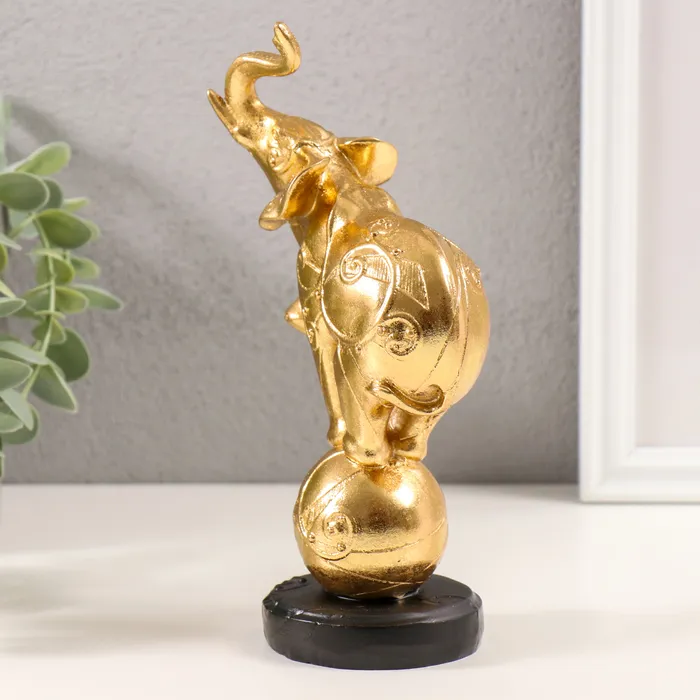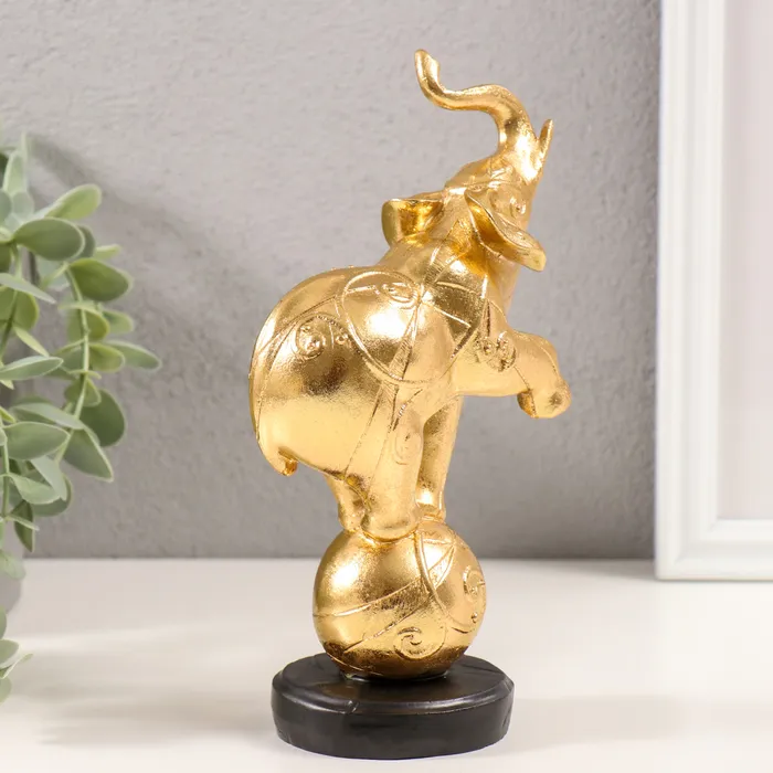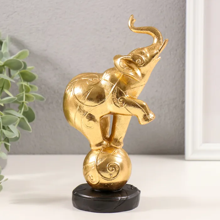 Фигурка полистоун «Слон на шаре с узорами», золото, 10×5.5×18.5 см — Характеристики