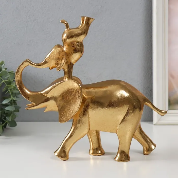 Фигурка полистоун «Слон со слонёнком на спине: гимнастика», золото, 25×9×23.5 см — Характеристики
