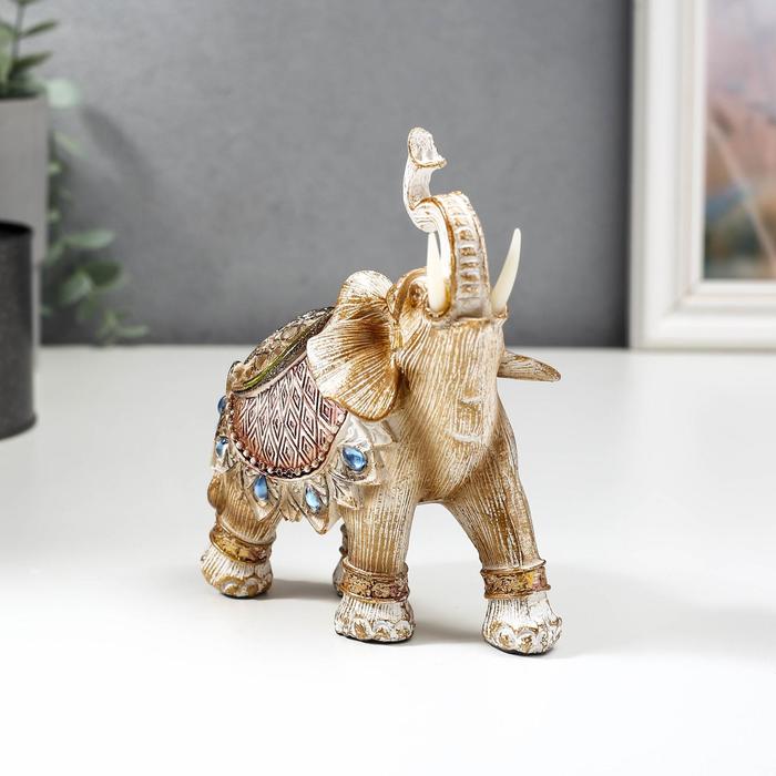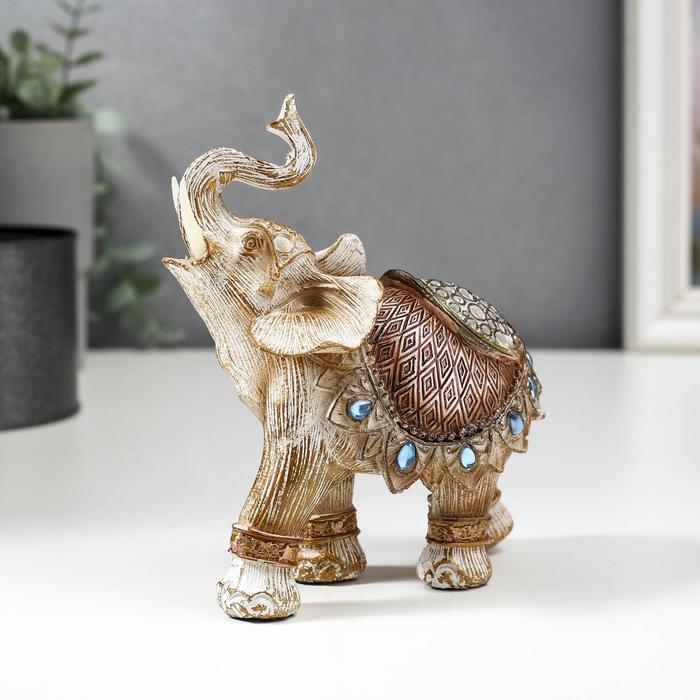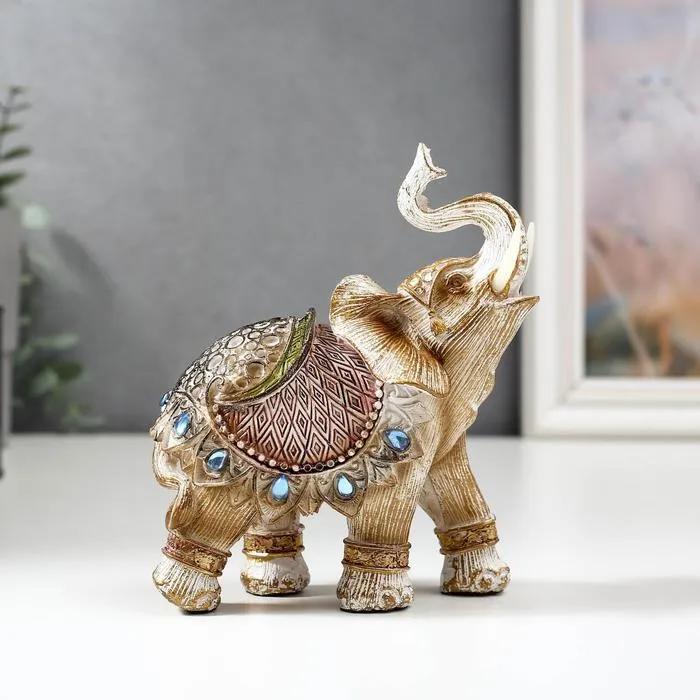 Фигурка полистоун «Слон в попоне с сапфирами», под дерево, 14×13×6 см, МИКС — Характеристики