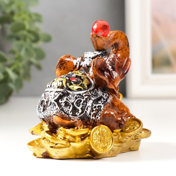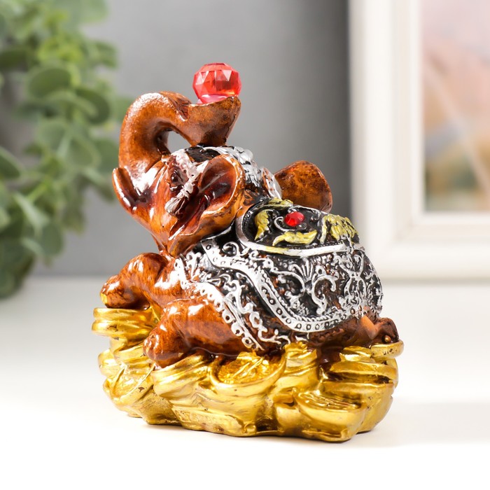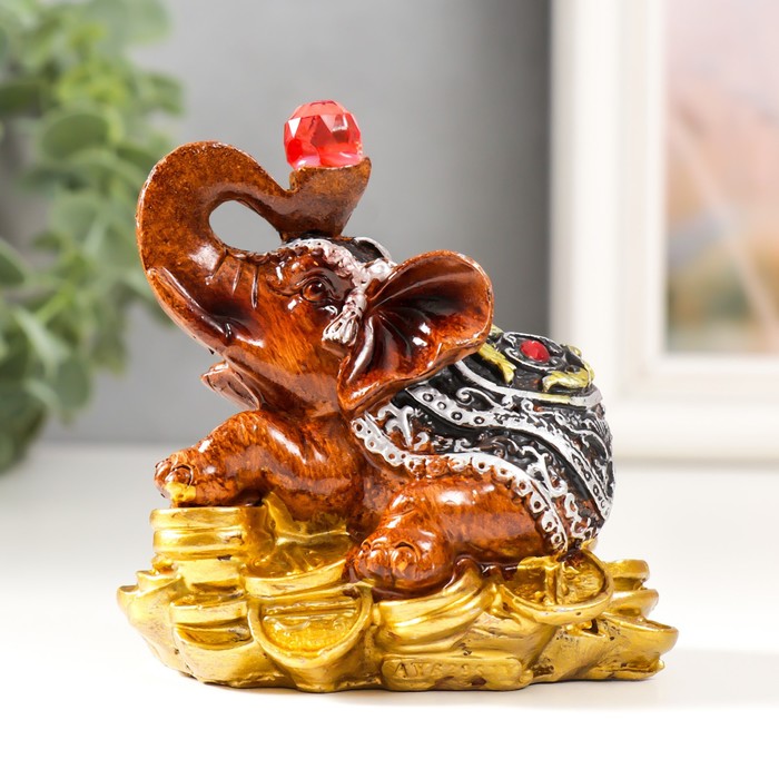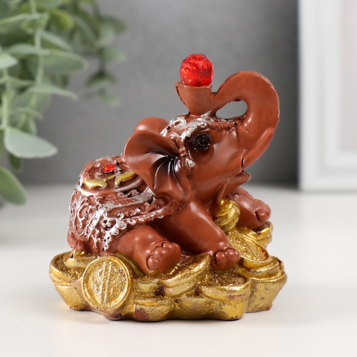 Этот слон из полистоуна — больше, чем просто статуэтка. Он станет хранителем вашего пространства, символом мудрости, стабильности и благополучия. Фигурка слона с рубином и монетами — популярный талисман для привлечения удачи в финансах и карьере. Тёплый коричневый оттенок и искусная детализация создают ощущение уюта и солидности, а рубин добавляет яркий акцент, притягивающий взгляд.