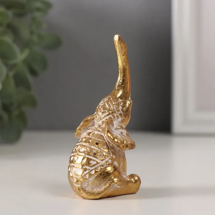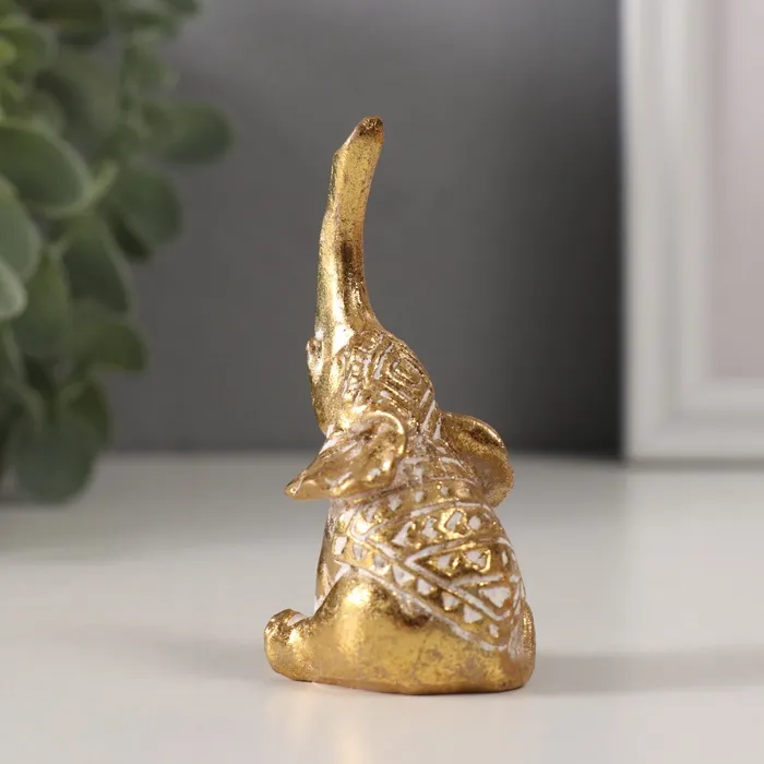 Фигурка полистоун «Слонёнок. Индейские узоры», золото, 3.3×3.5×7.5 см