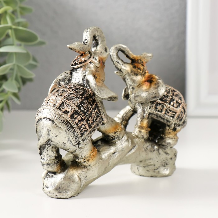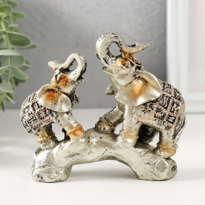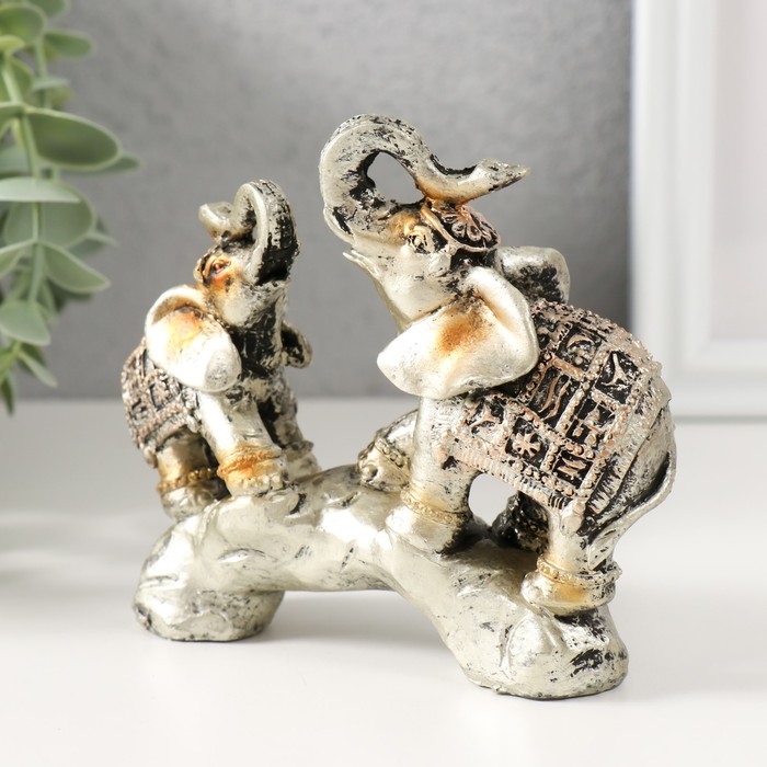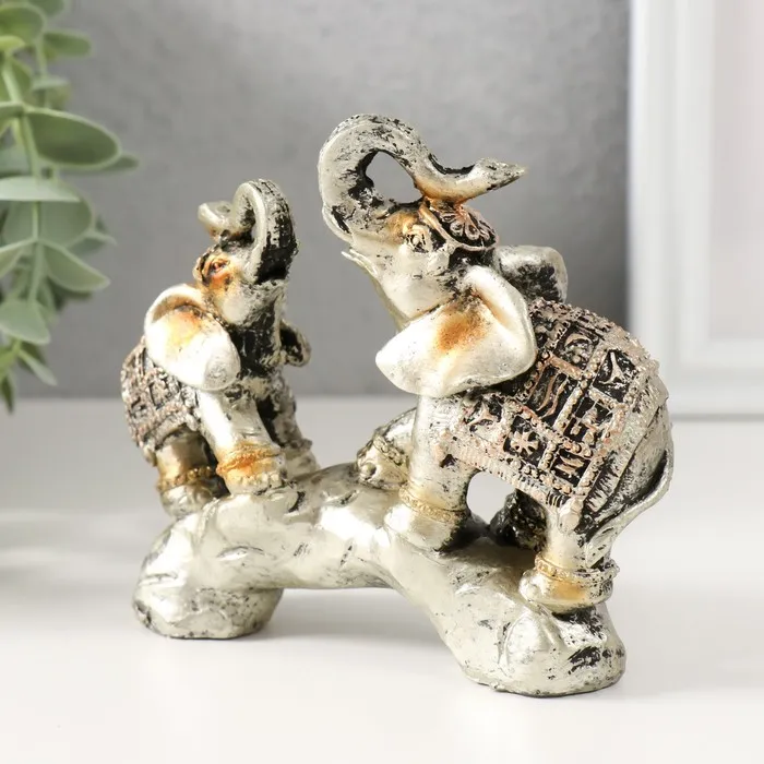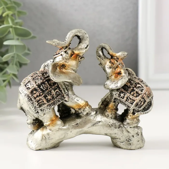 Фигурка полистоун «Слоны на камне с попонах с наскальными рисунками», 11×11×3.5 см — Характеристики