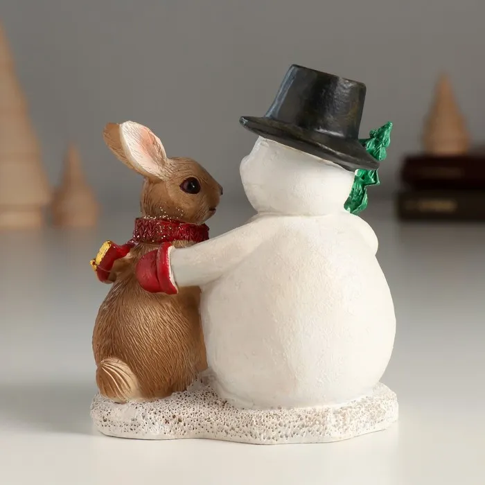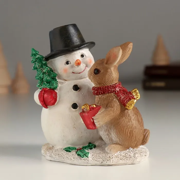 Фигурка полистоун «Снеговичок с ёлочкой и зайкой», 9×6.5×10 см — Характеристики