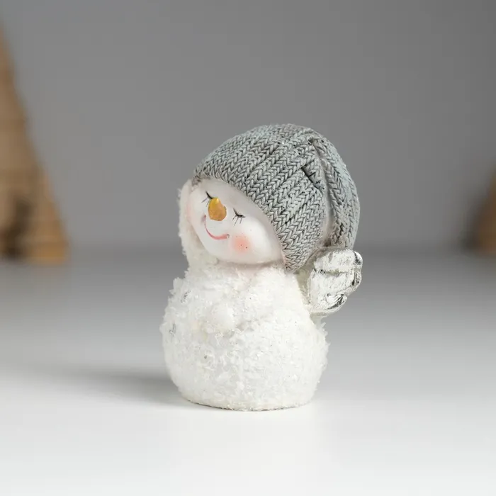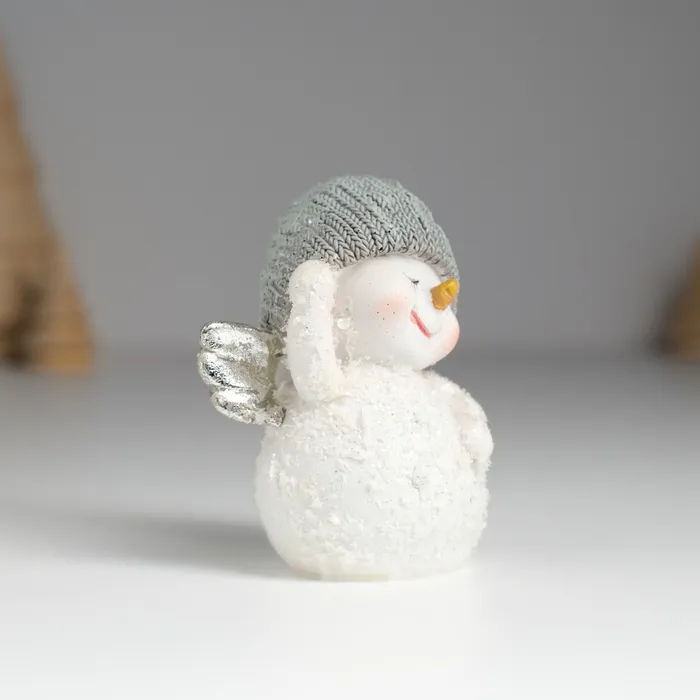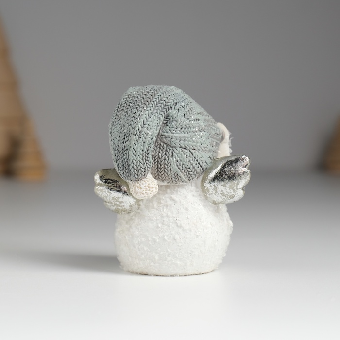 Фигурка полистоун «Снеговичок с серебристыми крыльями, в вязанном колпаке», 6×4×7.5 см — Характеристики