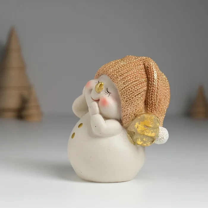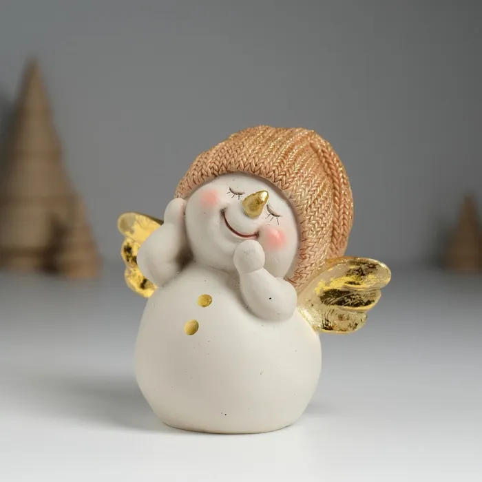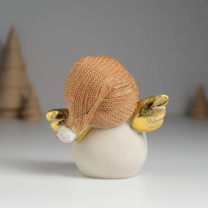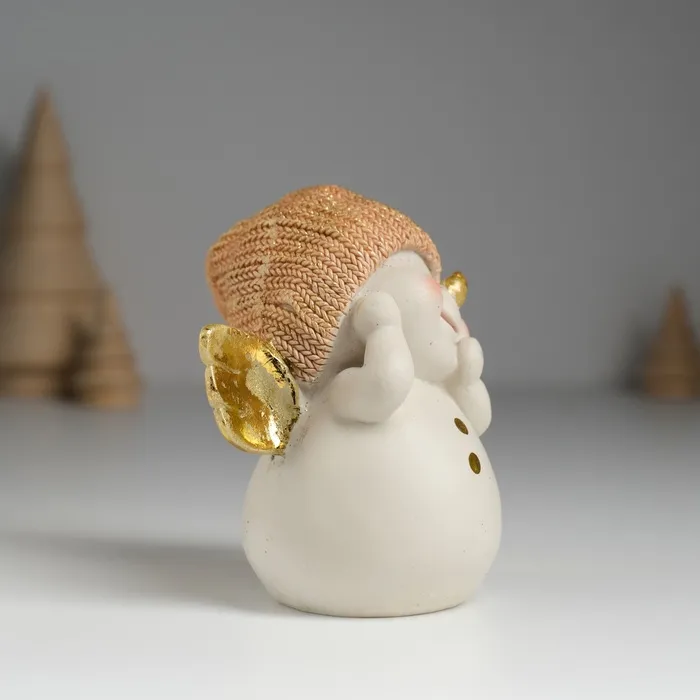 Фигурка полистоун «Снеговичок в золотистом вязанном колпаке, с крылышками», 9×6×9 см — Характеристики