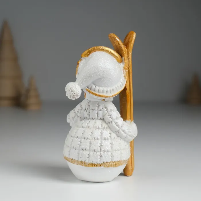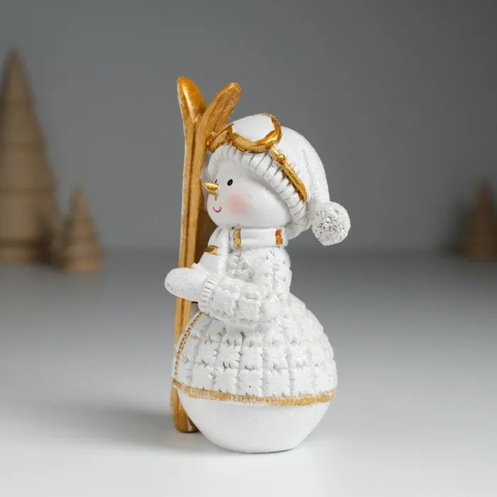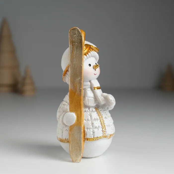 Фигурка полистоун «Снеговик лыжник в бело-золотом наряде», 5.5×5×10.2 см — Характеристики