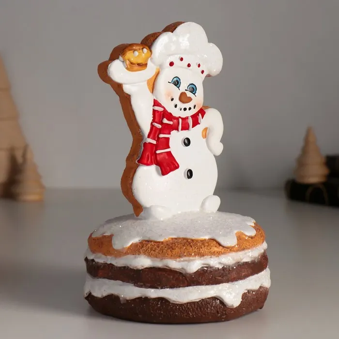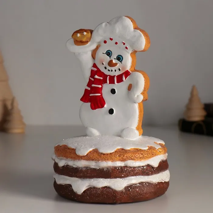Фигурка полистоун «Снеговик пряничный в глазури, с кексиком», 9×9×14.5 см — Характеристики