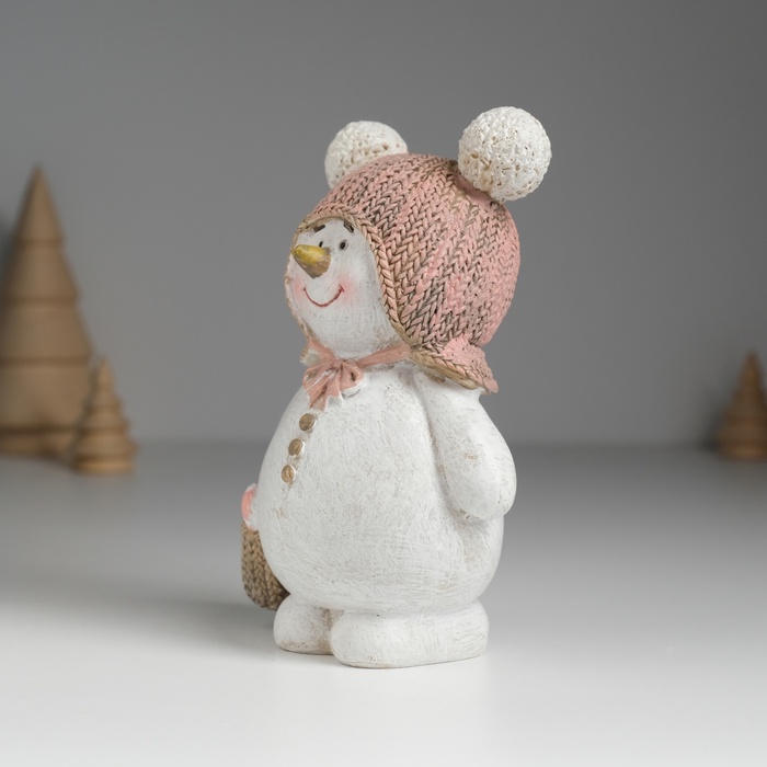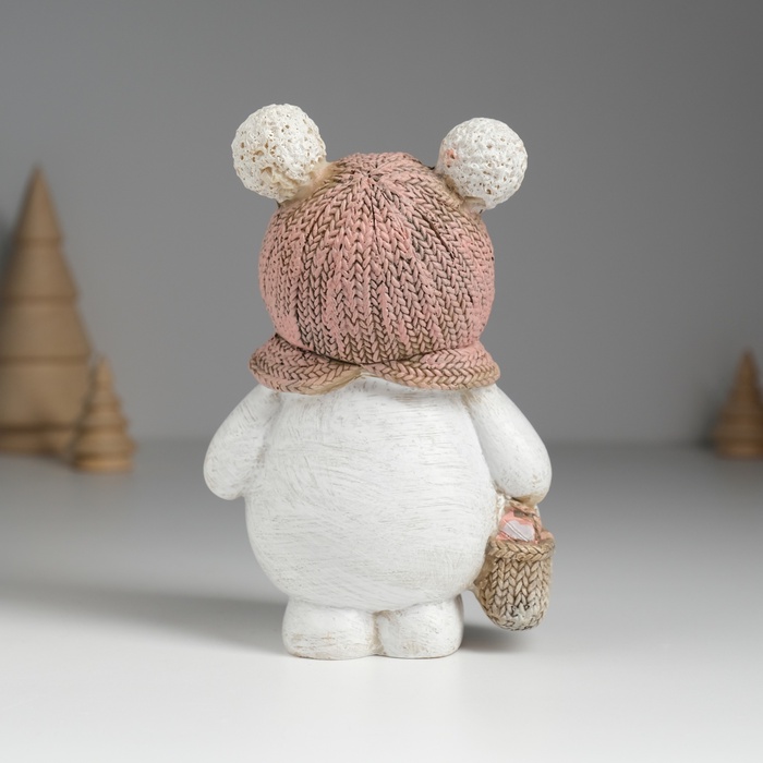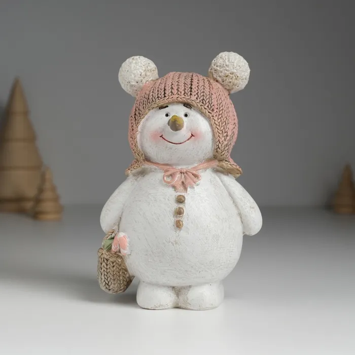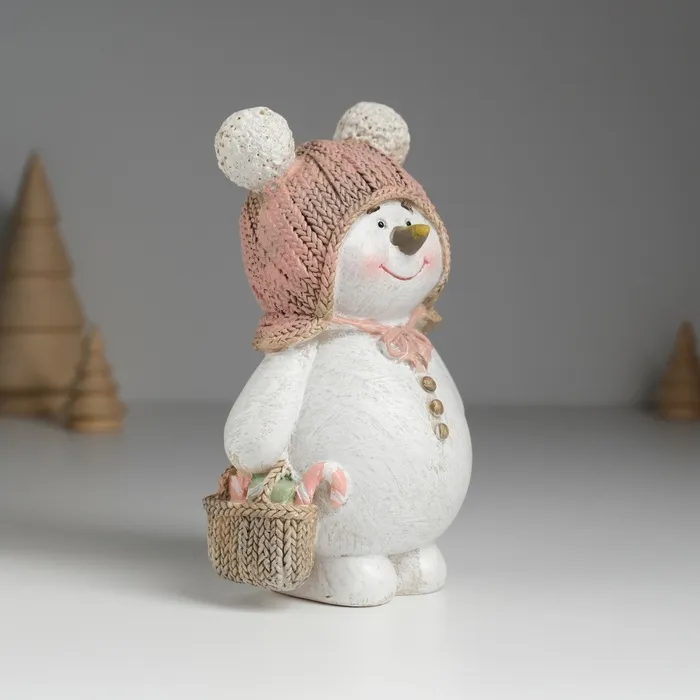 Фигурка полистоун «Снеговик в шапке с помпошками, с корзинкой», 8.5×5.5×13 см — Характеристики
