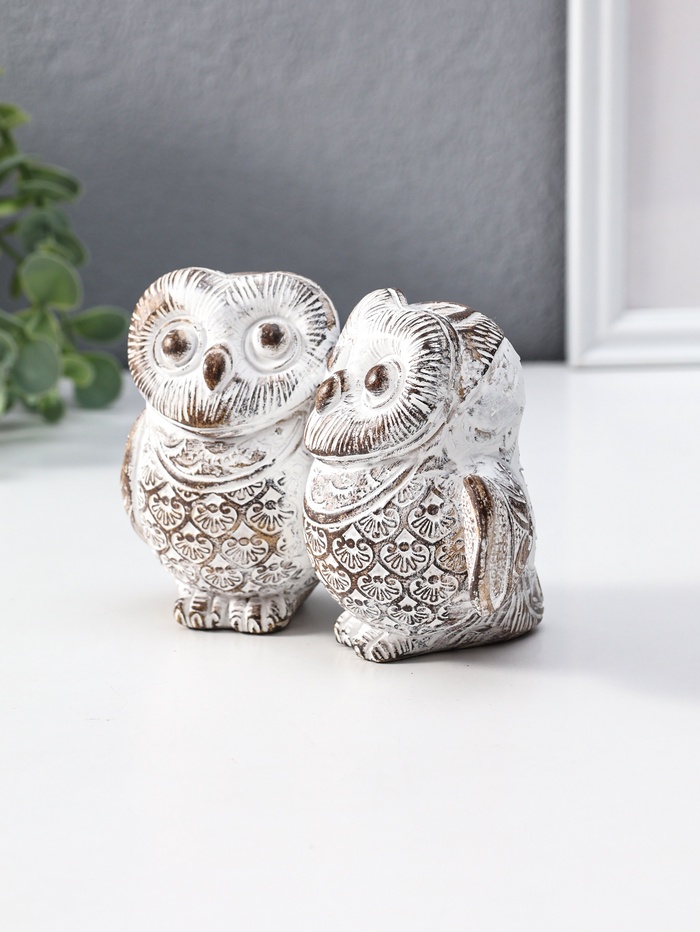 Эта фигурка двух совят в трогательном объятии — символ нежности, верности и мудрой дружбы. Белоснежный полистоун с деликатным золотым покрытием создаёт ощущение драгоценного фарфора, а тёплый оттенок патины добавляет образу глубины и винтажного шарма. Композиция станет многозначным подарком, который говорит о чувствах без слов.