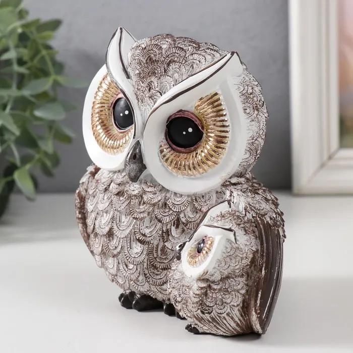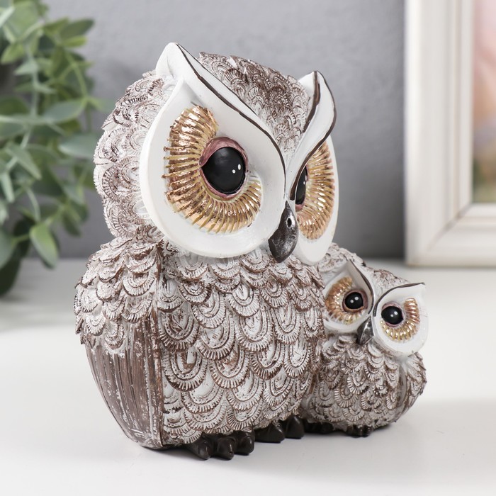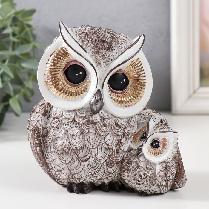 Фигурка полистоун «Совушка с совёнком, с золотыми глазами», 13.5×11.5×7.5 см — Характеристики