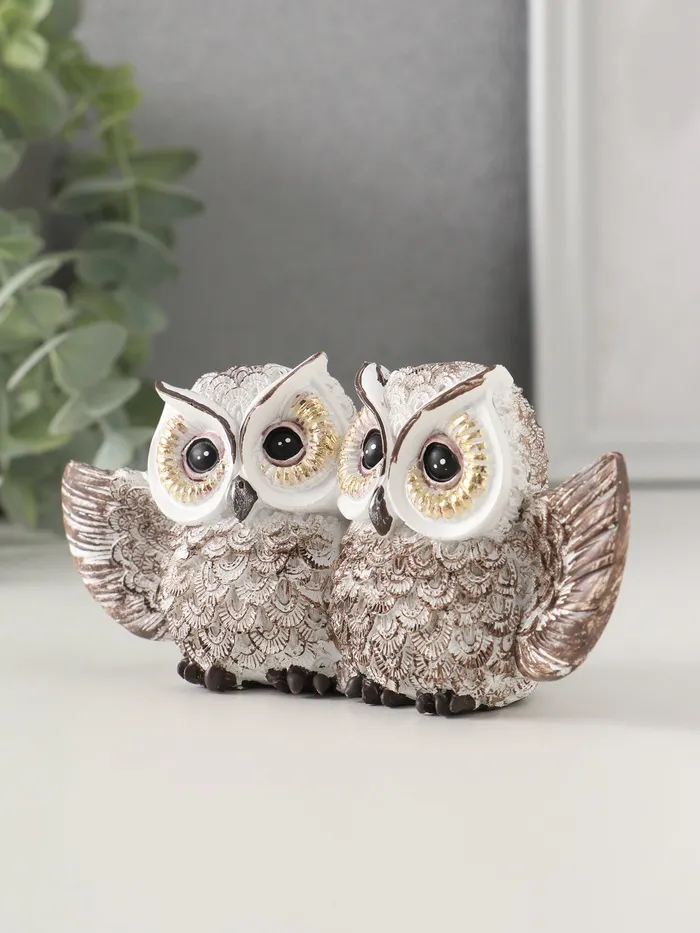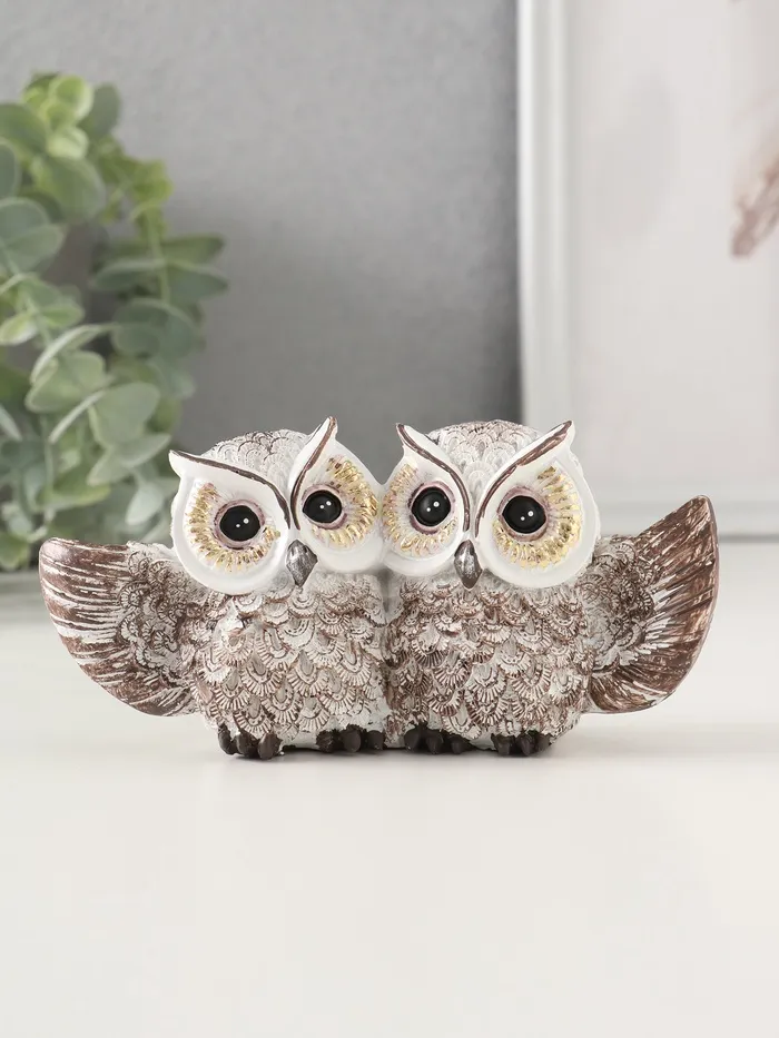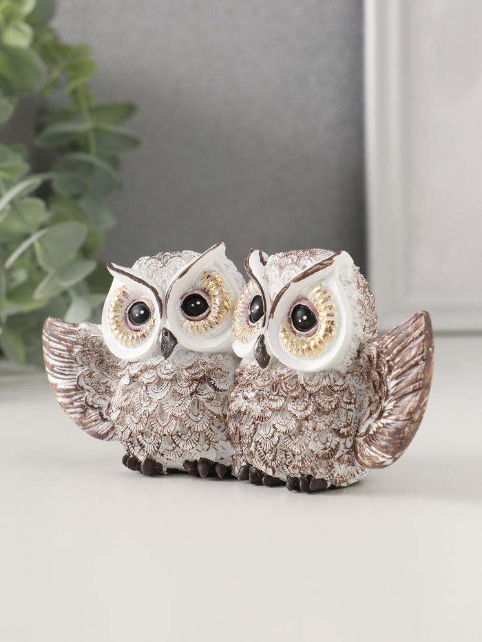 Фигурка полистоун «Совушки: объятия, с золотыми глазами», 6.5×13×3.5 см — Характеристики