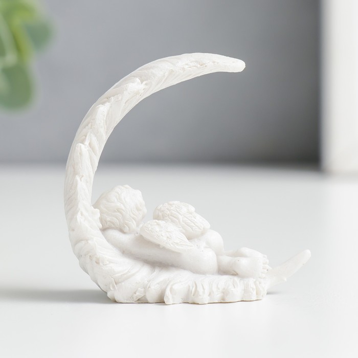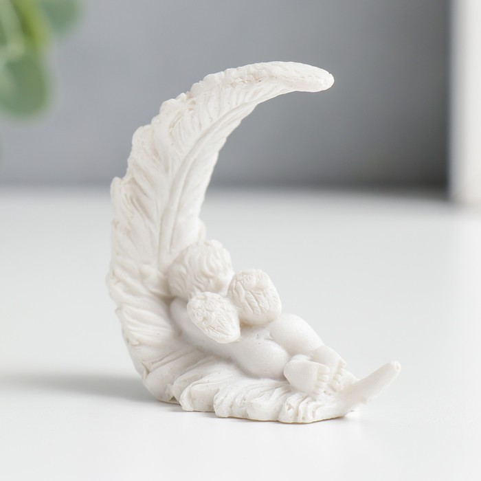 Эта фигурка спящего ангела на пёрышке — воплощение нежности и спокойствия. Миниатюрный белый ангел, созданный из полистоуна, станет трогательным элементом декора, наполняющим пространство светом и умиротворением.