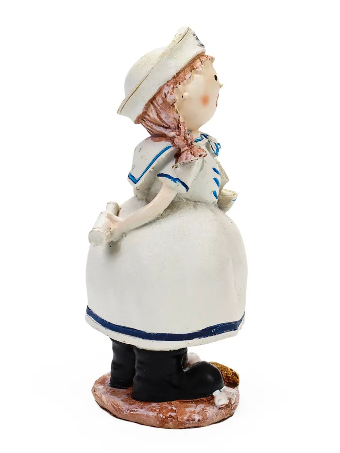 Очаровательная деталь интерьера, которая привнесёт нотку романтики и лёгкости в ваш дом — фигурка юной морячки из прочного полистоуна. Её яркий, жизнерадостный образ с тщательно проработанными деталями одежды и аксессуаров создаёт атмосферу беззаботности и летнего настроения в любое время года.
