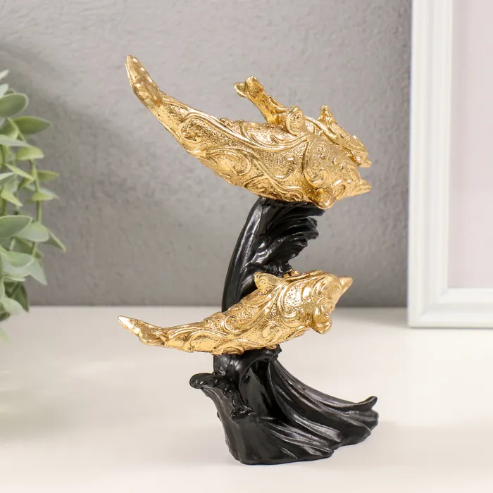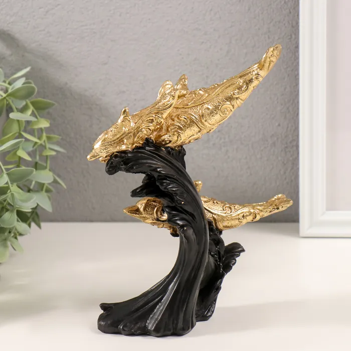 Фигурка полистоун «Три дельфина на волне, с узорами», золото, 14×7×17.5 см — Характеристики