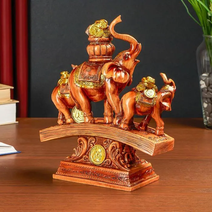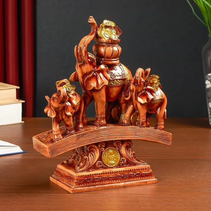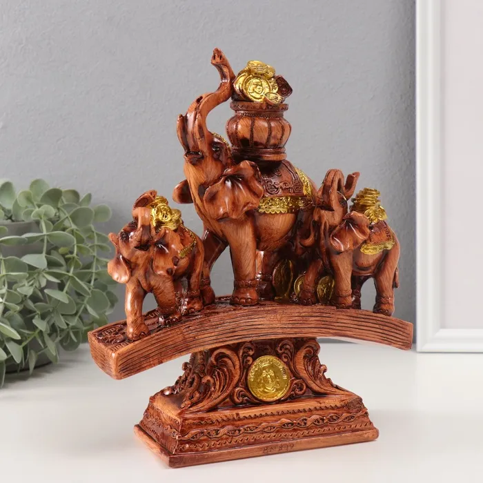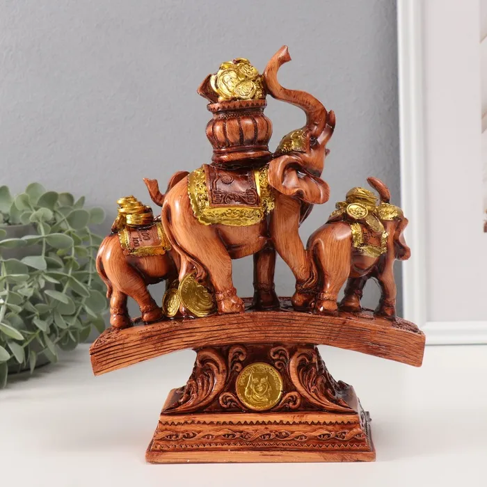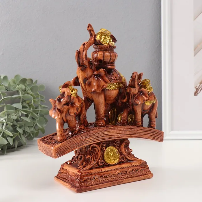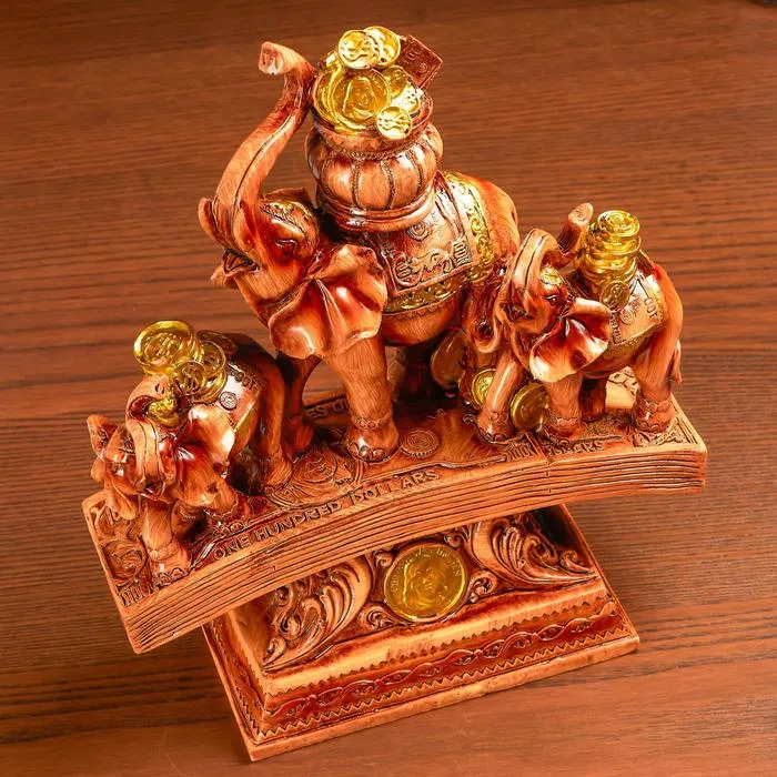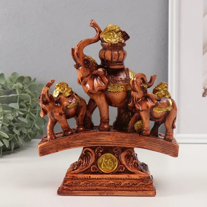 Фигурка полистоун «Три денежных слона на купюре с монетами», под дерево, 24.5×19.5×7.8 см — Характеристики