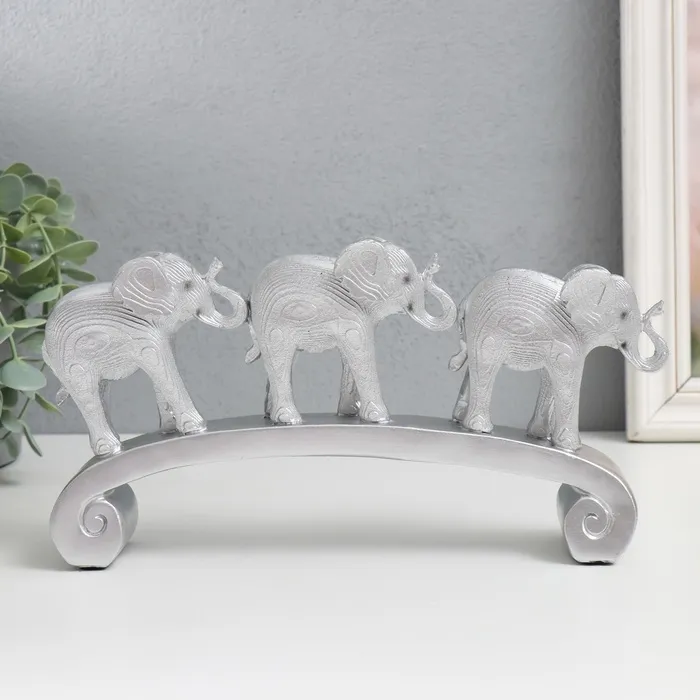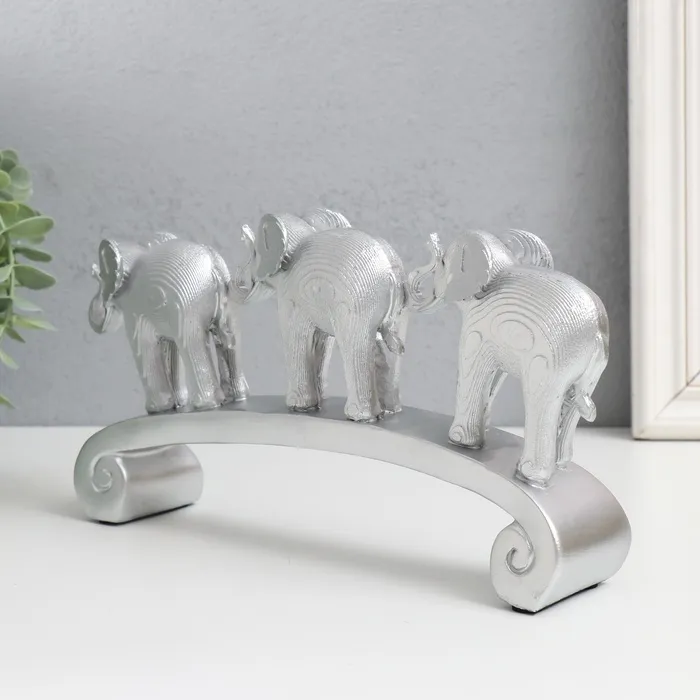 Фигурка полистоун «Три серебристых слона на дуге, слои», 26×5.5×13 см — Характеристики
