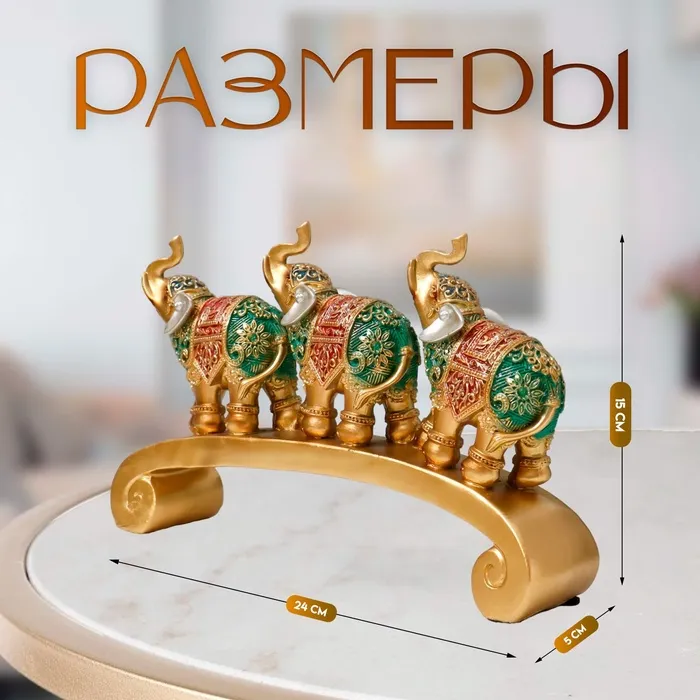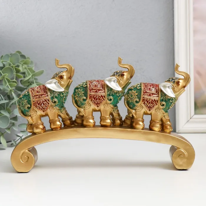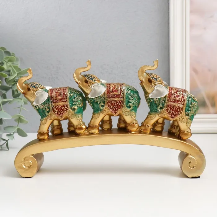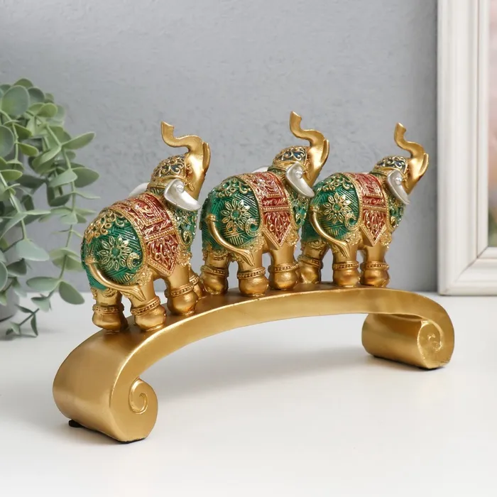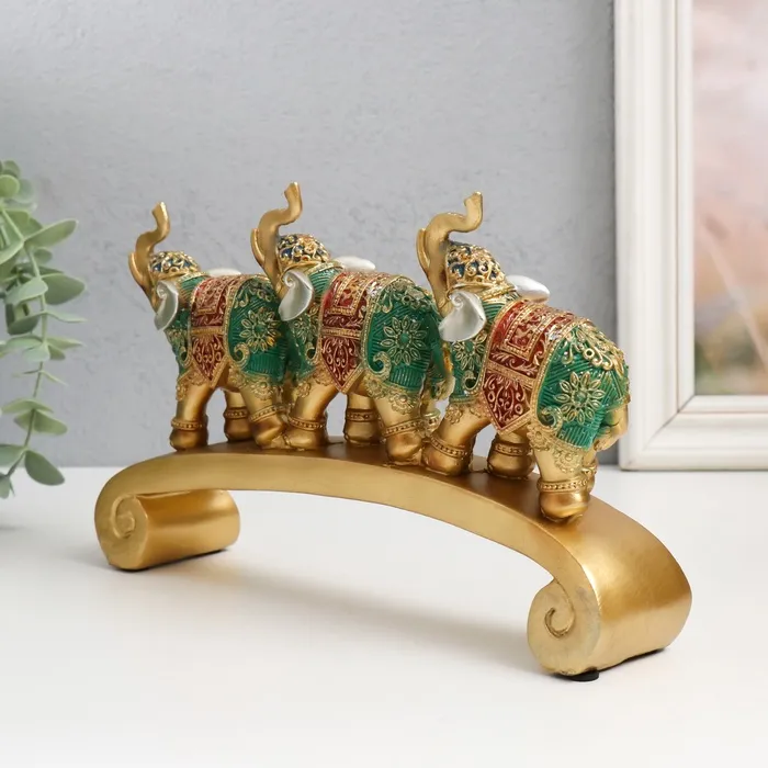 Фигурка полистоун «Три слона на дуге: попона с красно-зелёная», 24×5×15 см — Характеристики