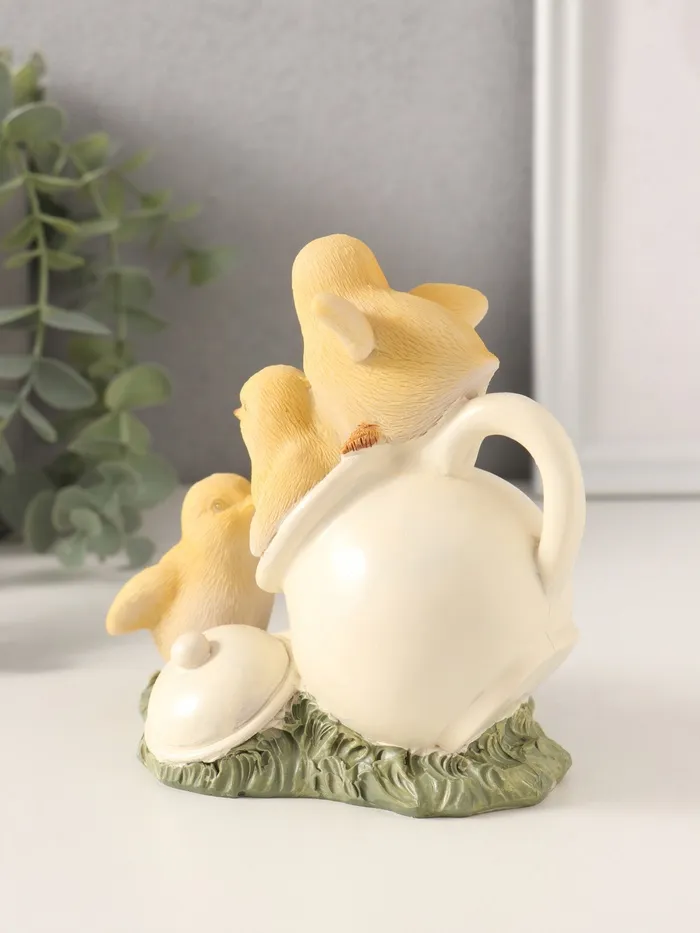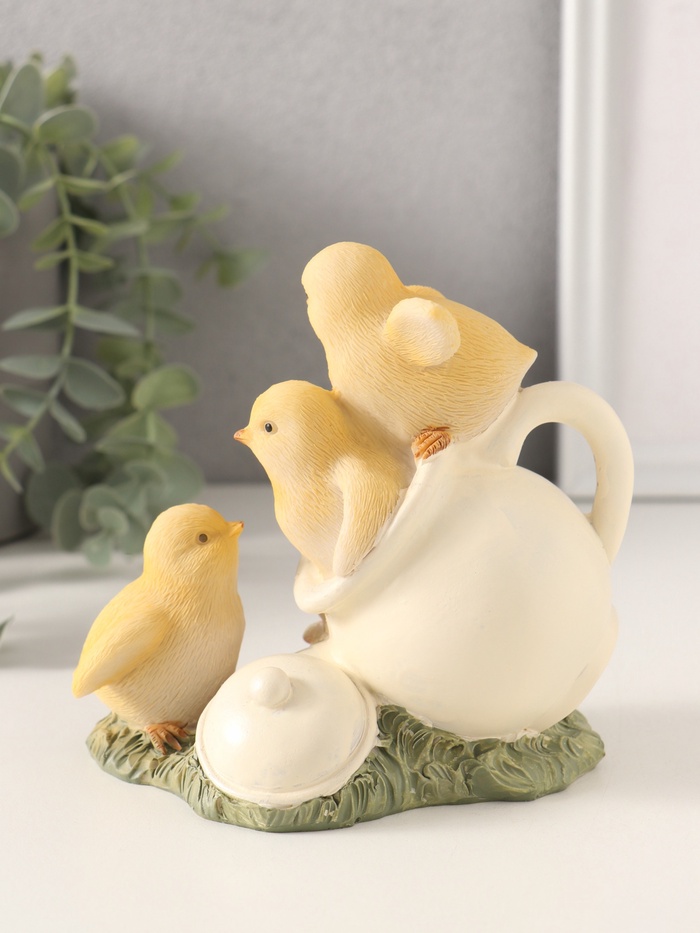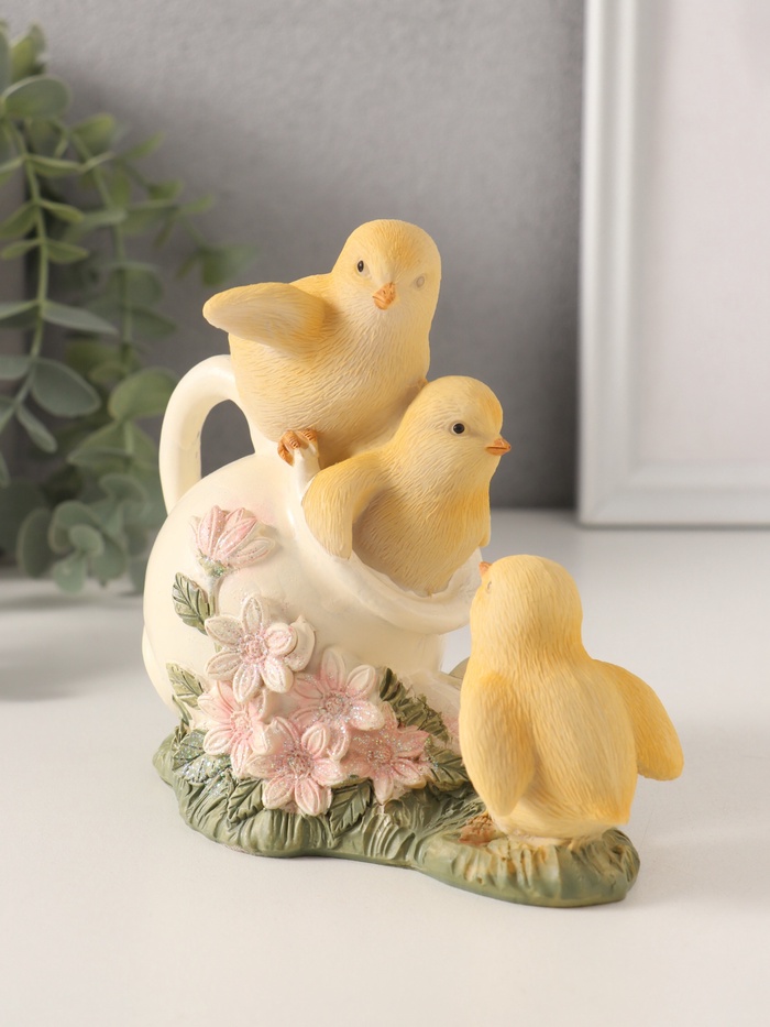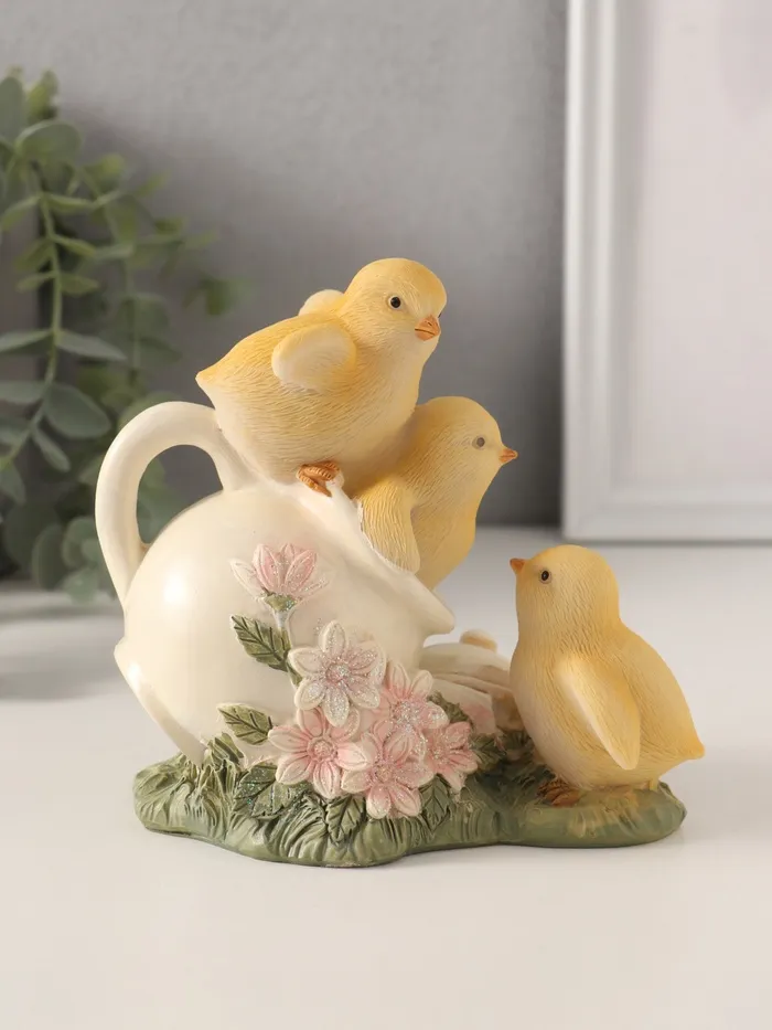 Эта фигурка цыплят и чайничек из полистоуна станет отличным дополнением вашего пространства, создавая атмосферу уюта и радости. Она идеально подойдёт для украшения дома или сада, привнося в повседневную жизнь нотки тепла и комфорта.