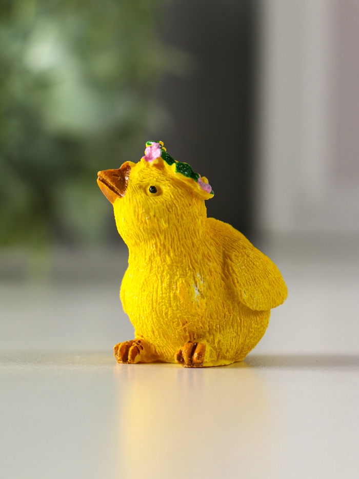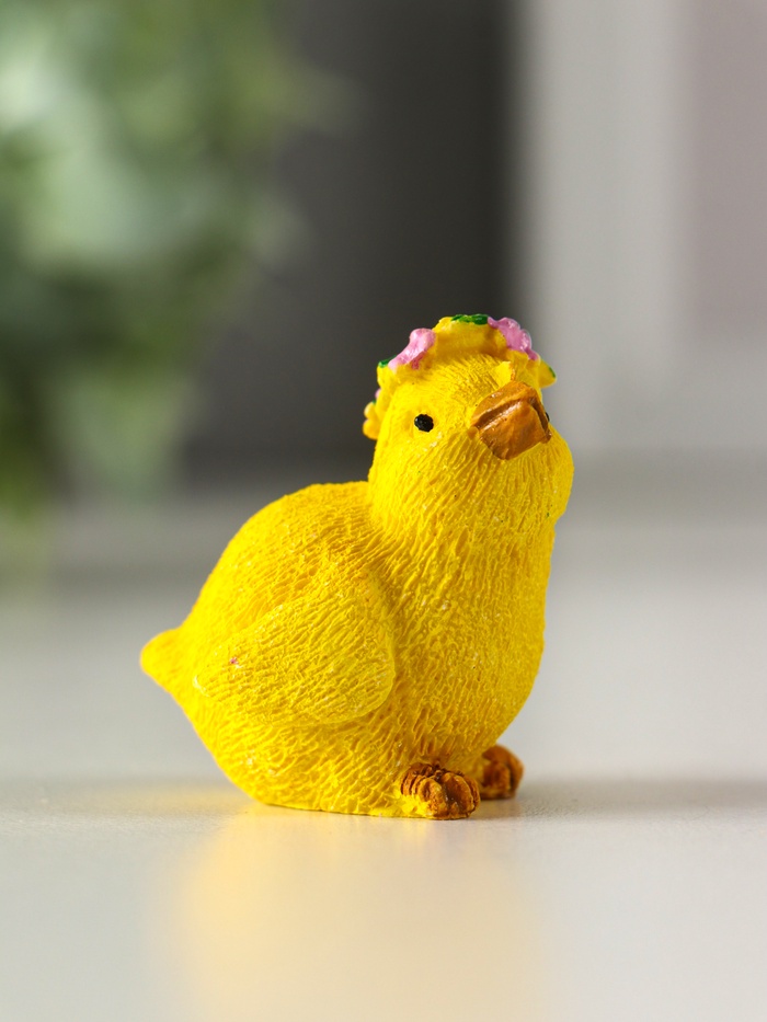 Фигурка полистоун «Цыплёнок в веночке, с гнездом», 4×3×4 см, МИКС — Характеристики