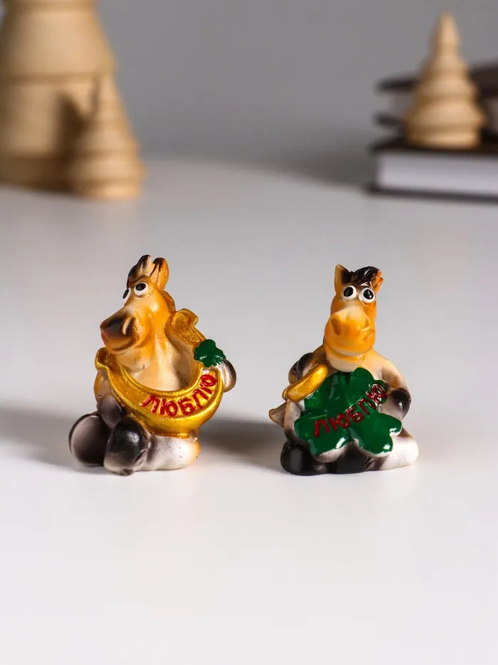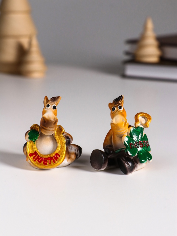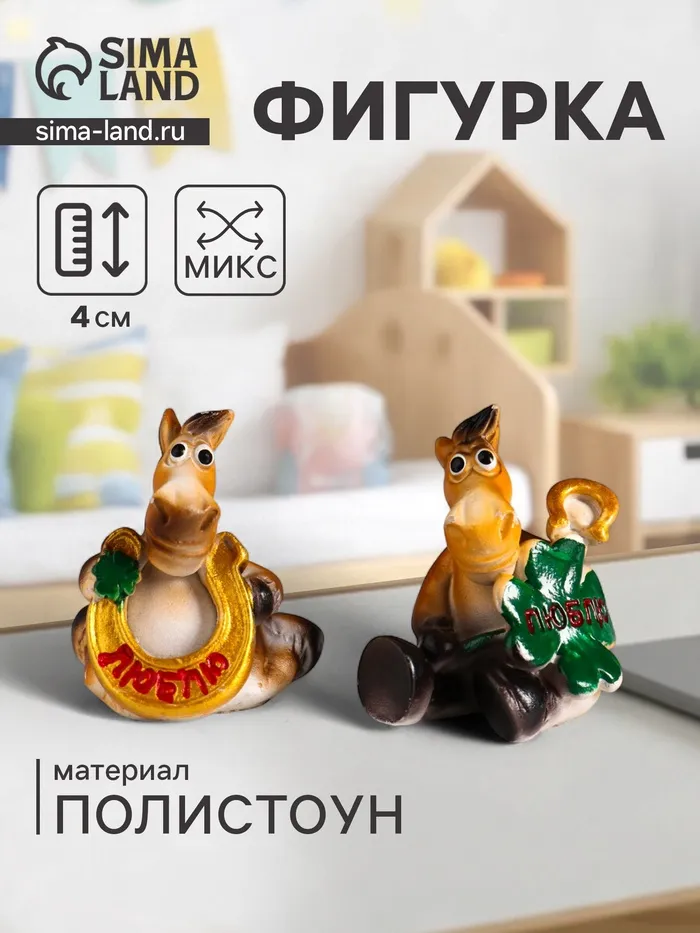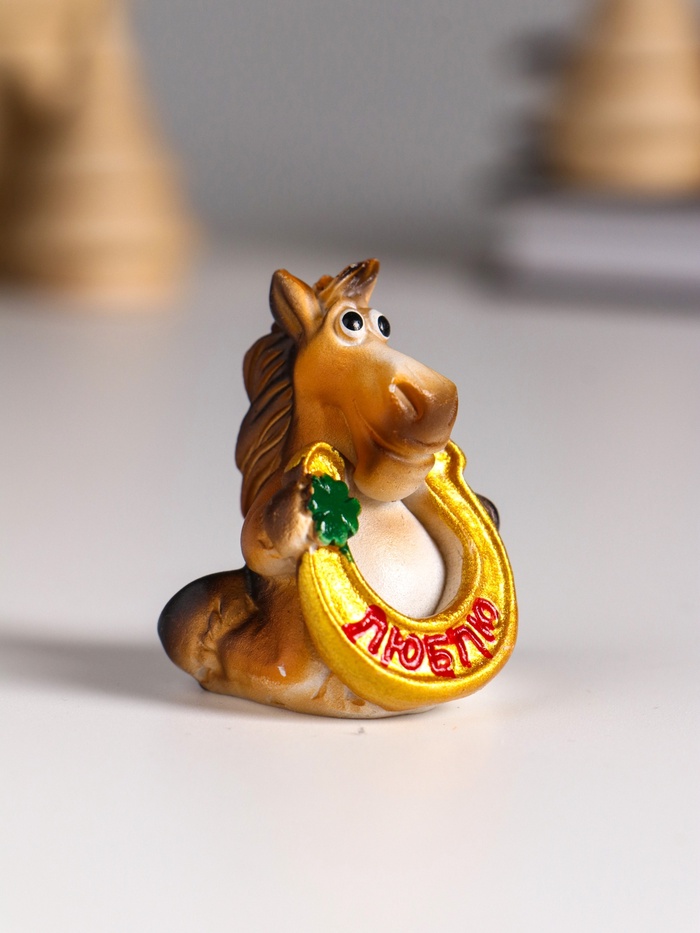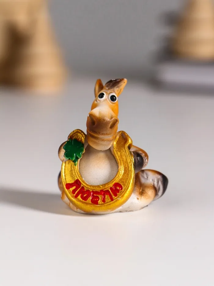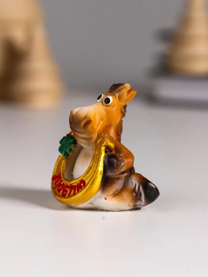 Фигурка полистоун «Улыбающийся конь с подковой и клевером», 3.5×3×4 см, МИКС — Характеристики