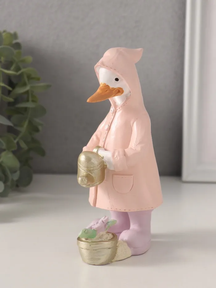Фигурка полистоун «Утка в дождевике поливает цветок из лейки», 9.5×6×14.5 см — Характеристики